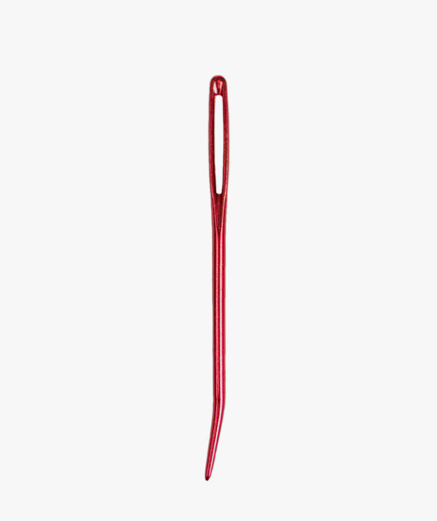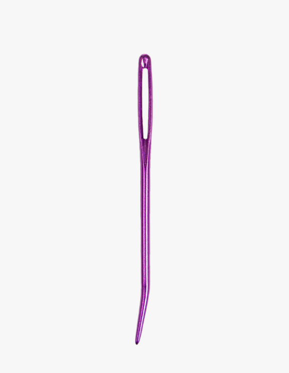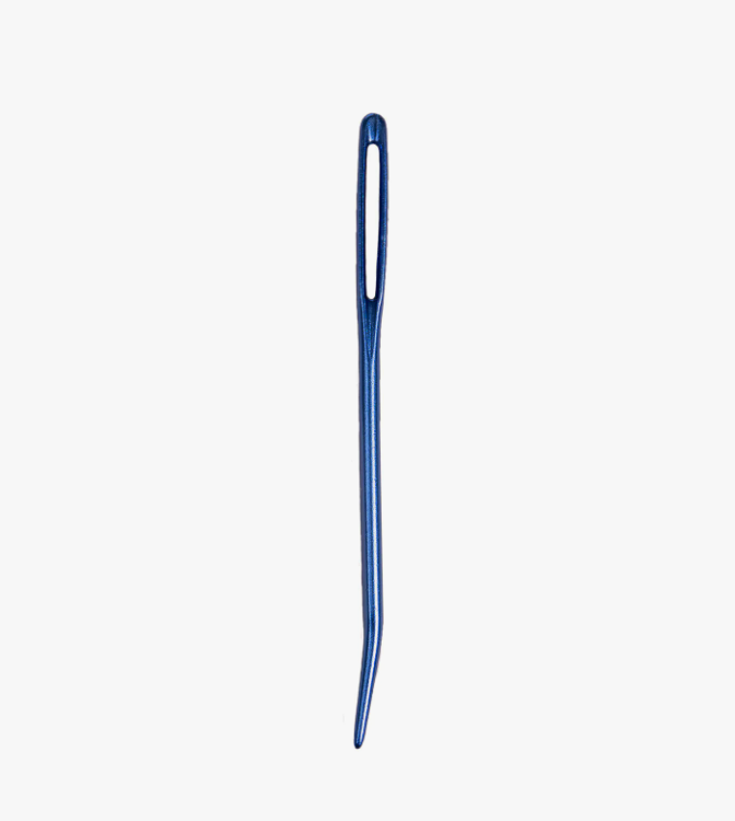 Agulha para entrançar com ponta curva, para garantir que não pica acidentalmente o cavalo.