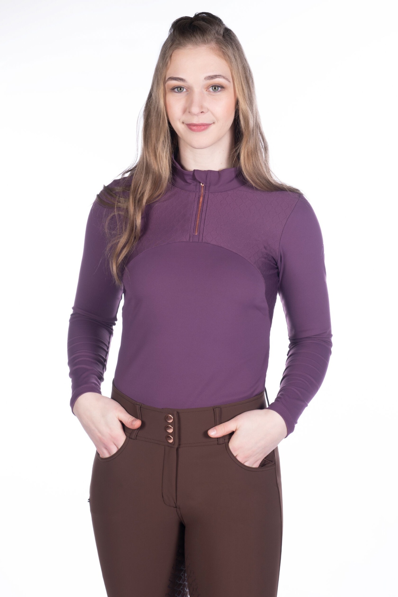 Baselayer de gola alta, com corte ajustado ao corpo, fabricada em material elástico confortável e respirável.