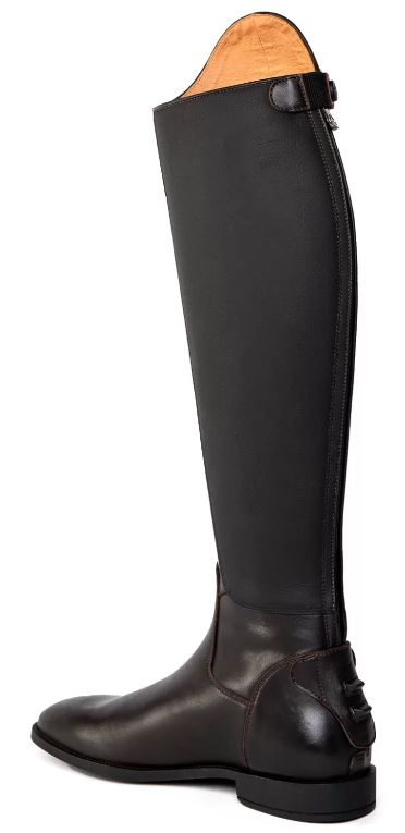 São produzidas em pele macia de alta qualidade e com pele grip no lado interior do cano para potenciar mais o contacto com o cavalo. O forro vegan é antibacteriano e respirável e a sola é de borracha. No calcanhar, têm uma proteção de fecho para garantir a sua preservação e durabilidade e, ainda, um spur duplo, oferecendo mais segurança durante a prática de equitação.