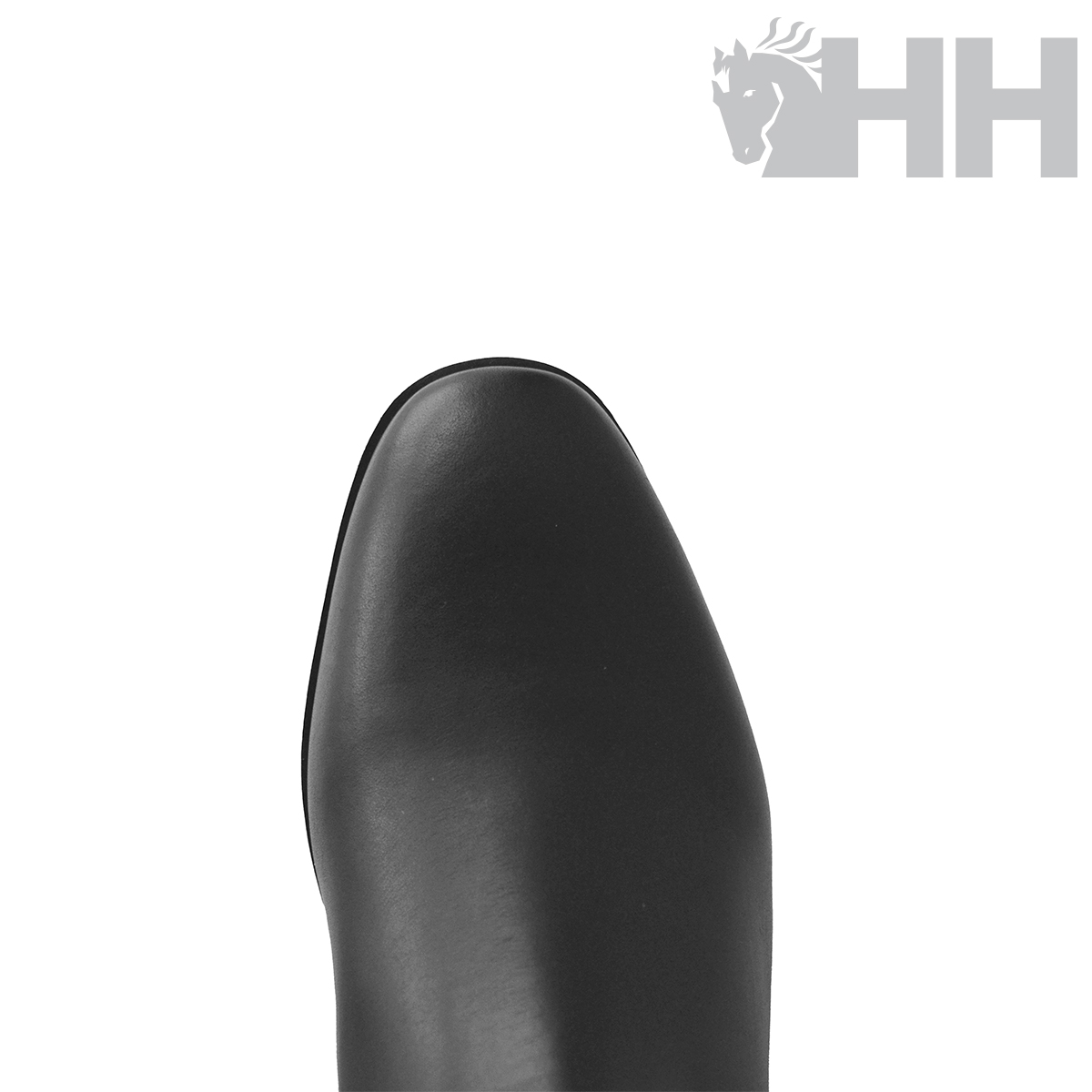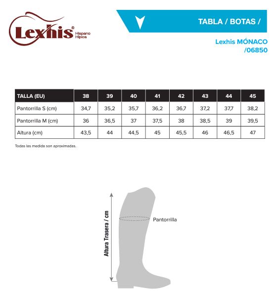 Bota para dressage fabricada em couro natural de duas capas ou duas zonas diferencidas. O exterior em boxcalf resistente e luxoso e o interior é um couro vegetal suave, con muito agarrre mas muito resistente. Mediante essa suavidade do couro e o agarre, o cavaleiro tem um maior contacto com o selim e o controlo do cavalo. Para além disso, a bota tem um forro interior tipo Cambrelle para absorção do suor, sola com sistema de absorção de impactos e na parte posterior conta com um fio interior semirígido para manter a altura e rigidez da bota.