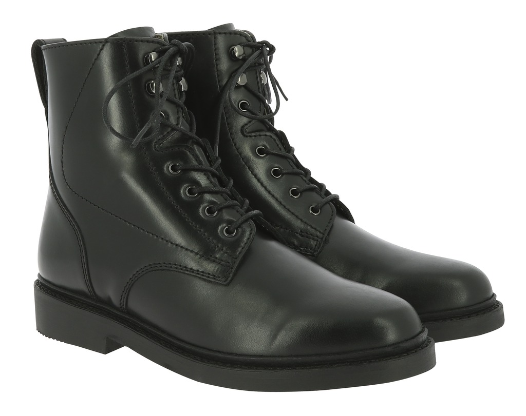 Botins com atacadores em pele de vaca plena flor de alta gama (primeira qualidade), seleccionadas com máxima perfeição. Sola de borracha de nitrilo GoodYear. Forro interior de couro de vaca. Desenhadas para uso intensivo.
