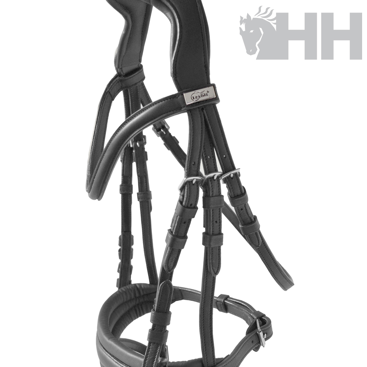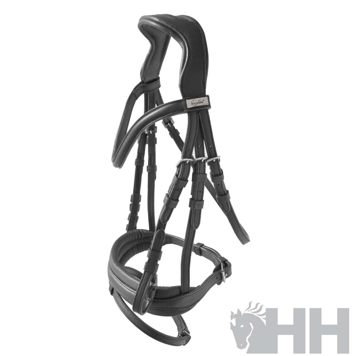 Cabeçada fabricada com couro duplo ensebado de muito alta qualidade e ferragens de aço inoxidável.