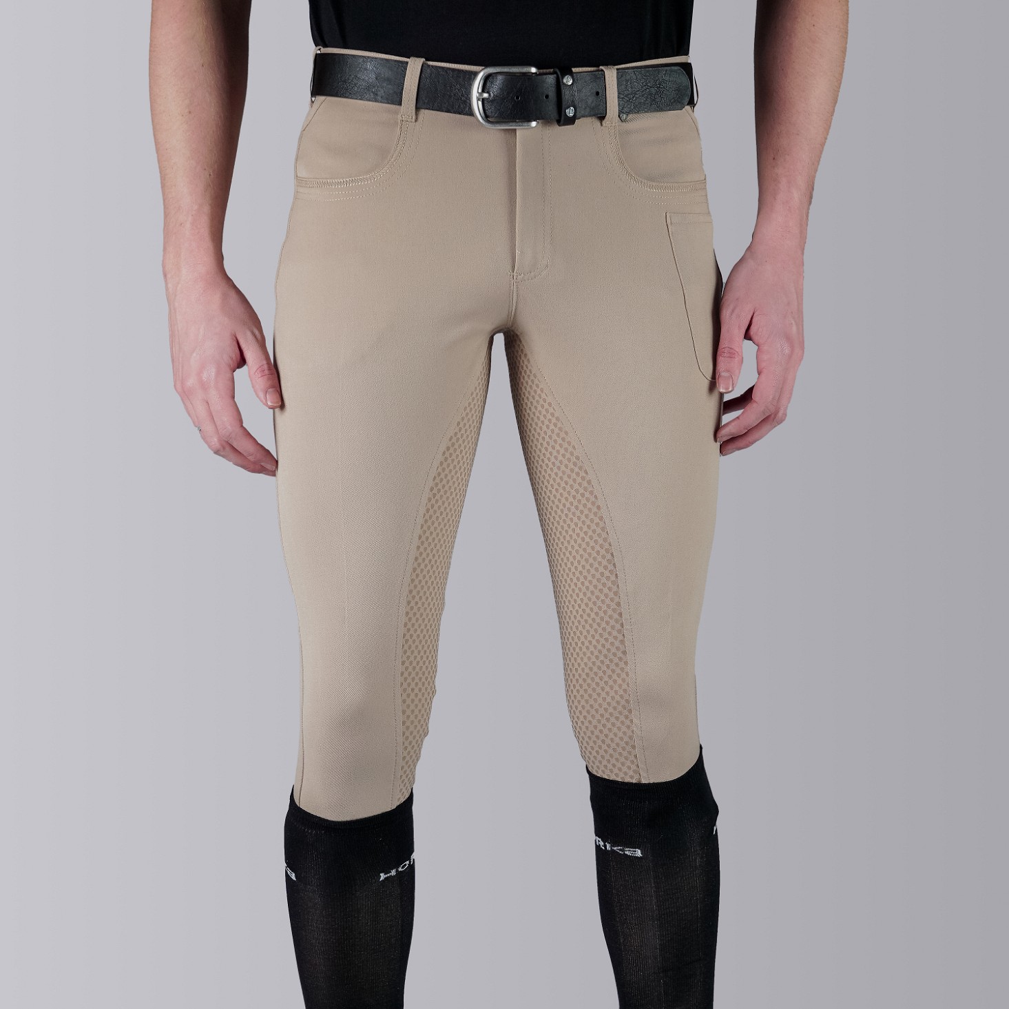 Calças de homem modernas com tecido técnico. Com assento em silicone para melhor aderência ao arreio. Com detalhes em cor a contraste e bolso para o telemóvel.