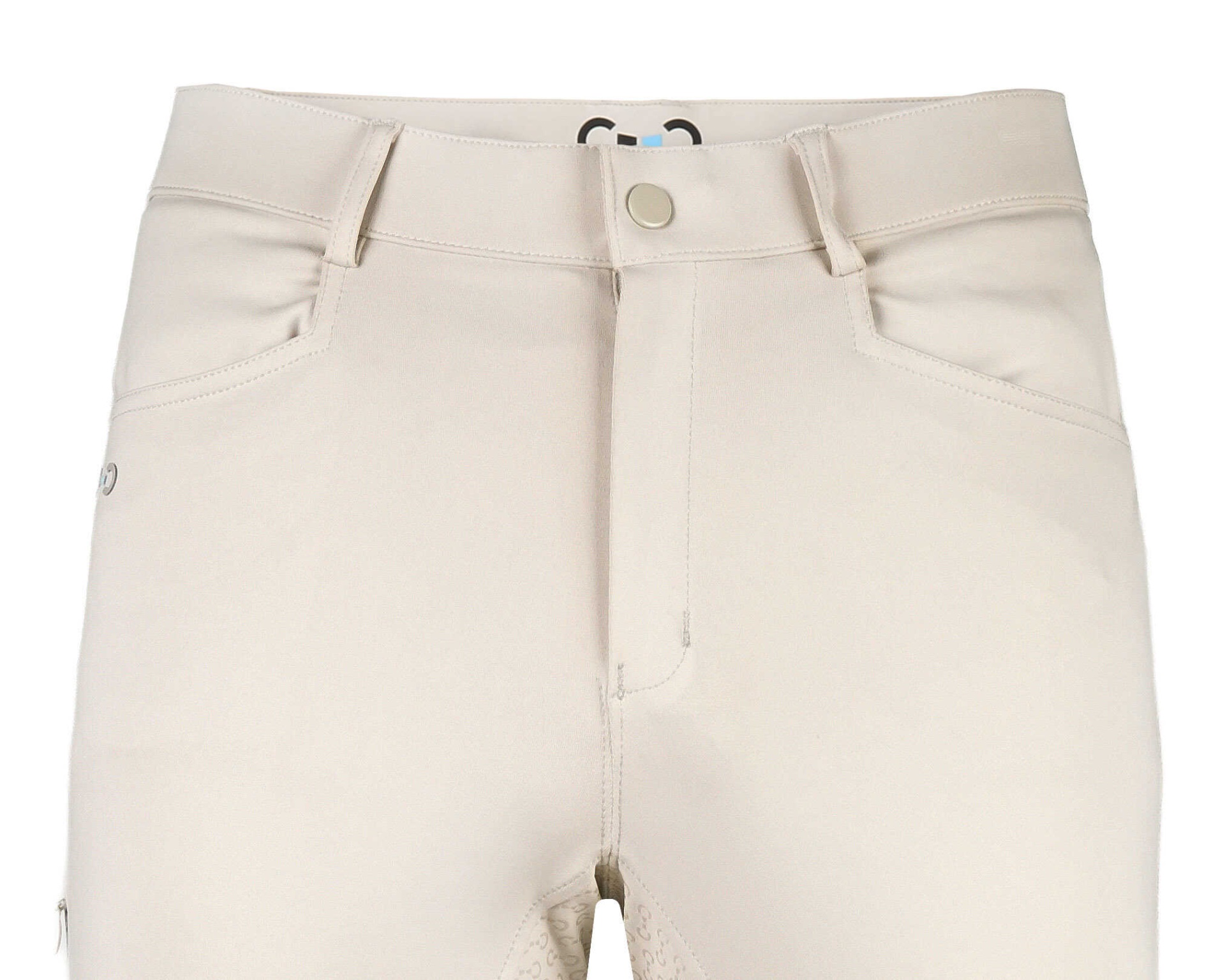 Calças de homem leves em material elástico, transpirável e absorvente. Assento em silicone e zona do tornozelo em lycra.