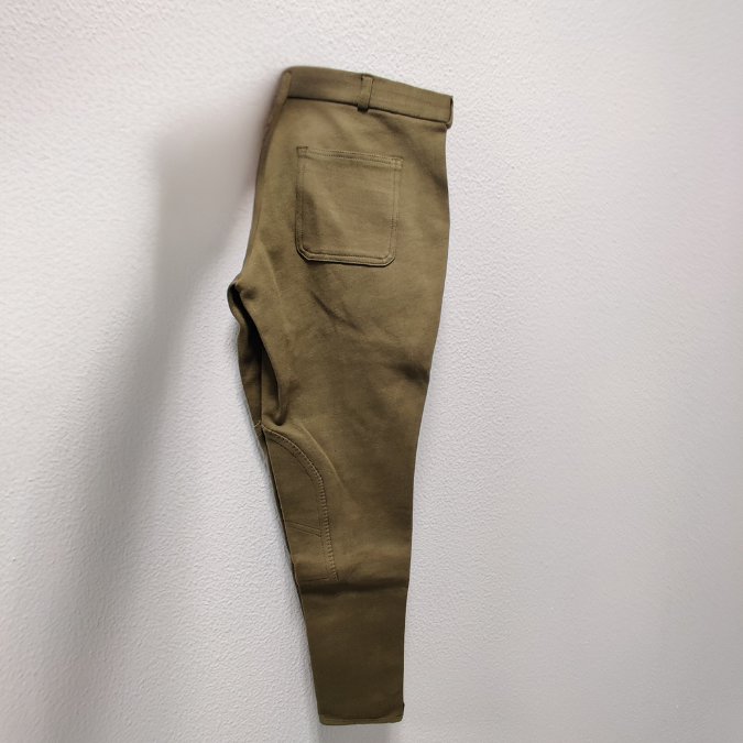 Calças em algodão com corte direito, passadores de cinto e velcro no tornozelo.