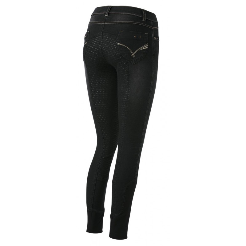 Uns jeans em versão calça de equitação. Cómoda de usar graças ao seu tecido denim extensível com sobrecosturas e bordados nos bolsos traseiros contrastados. Ideal para tempo quente!