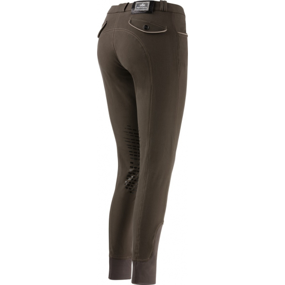Calças de montaria castanhas escuras com detalhes em silicone e bolso traseiro
