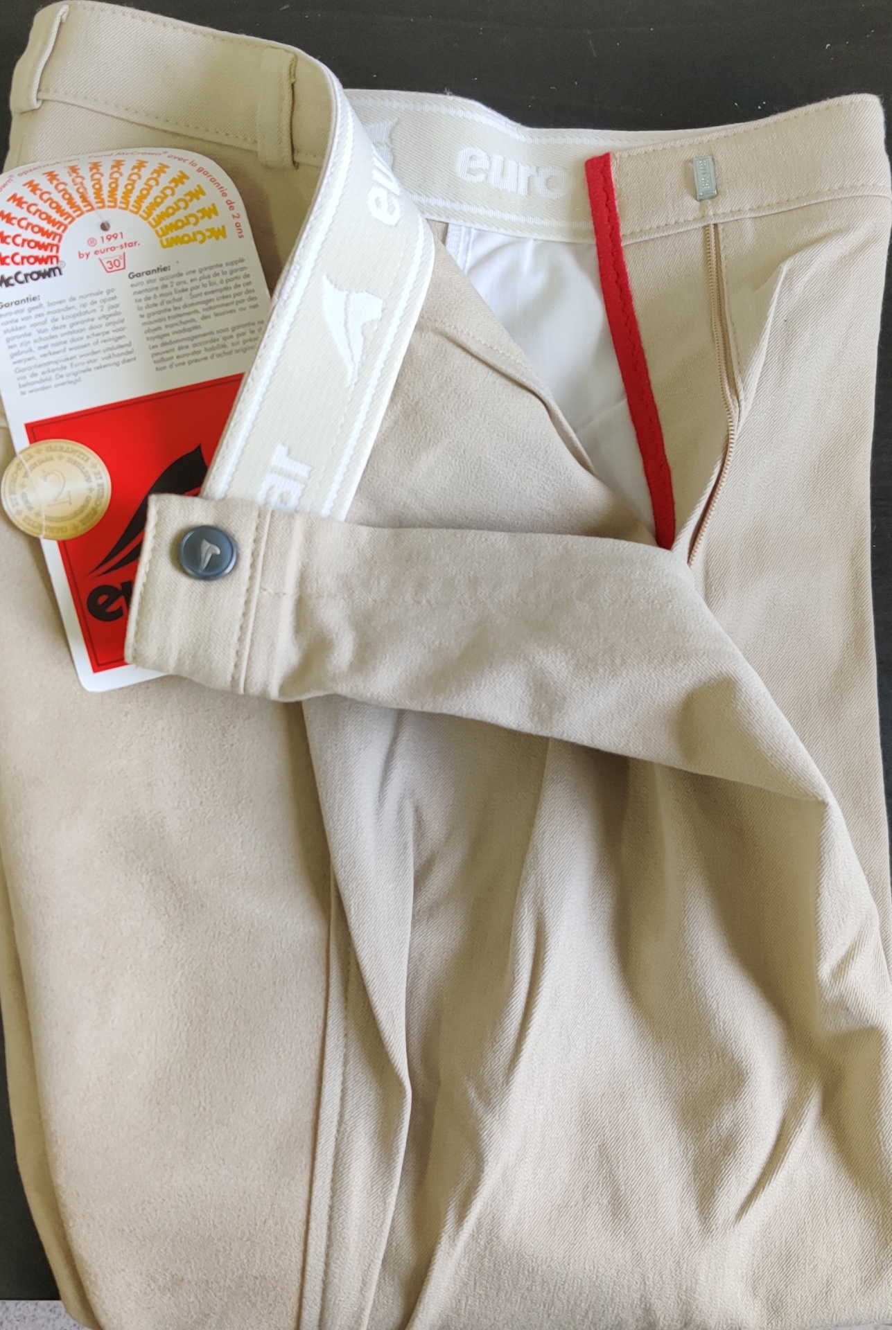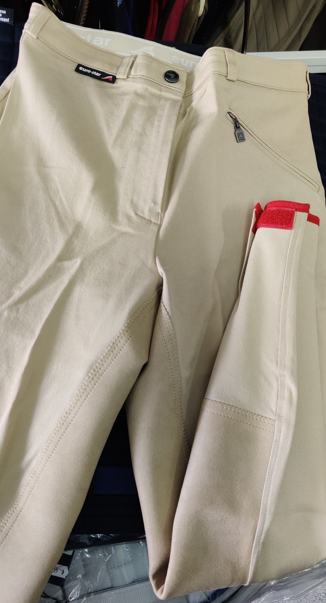 Calças de senhora Euro-Star, com assento completo em camurça. Fechos de velcro no tornozelo.