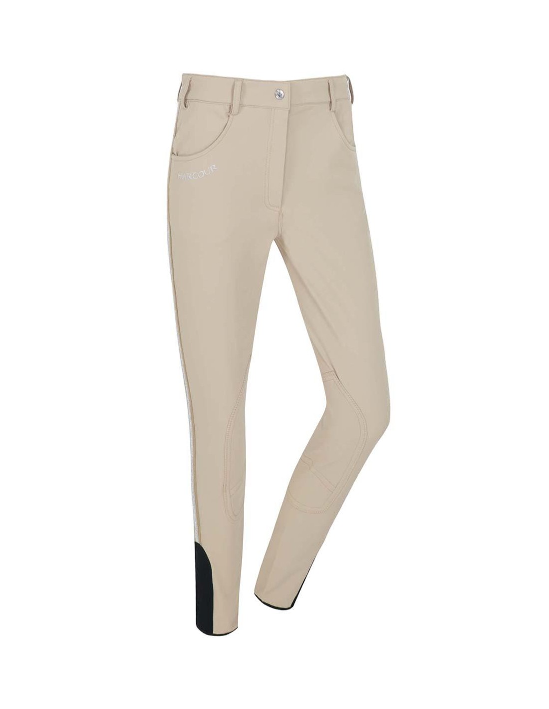 Com elásticos prateados em contraste nas laterais que dão um toque desportivo e permitem que se adapte à forma do cavaleiro durante os exercícios.