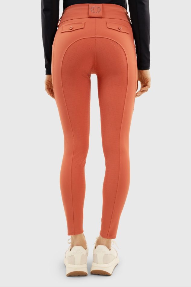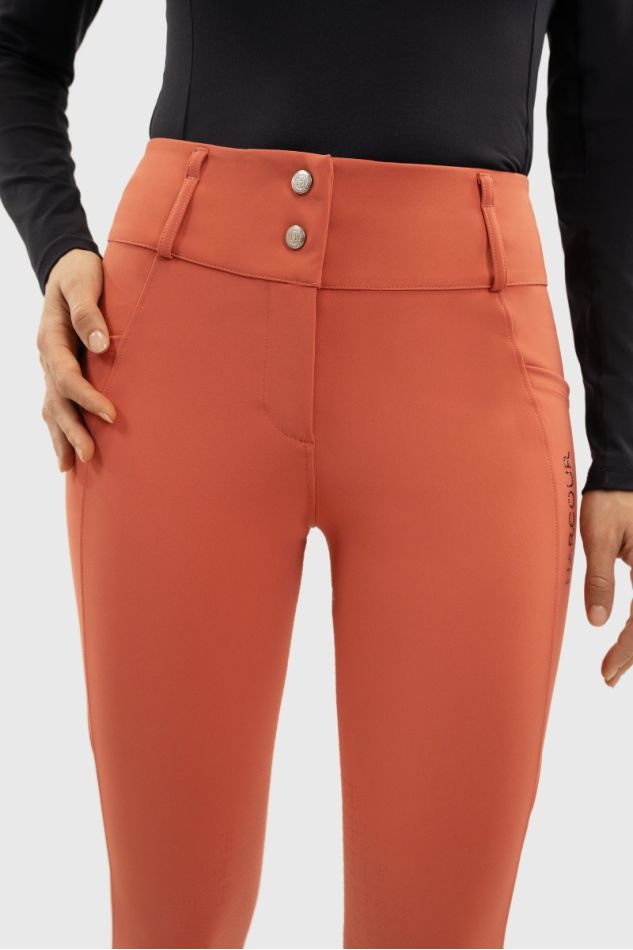 Calças de senhora, de corte justo e cós alto e modelador.