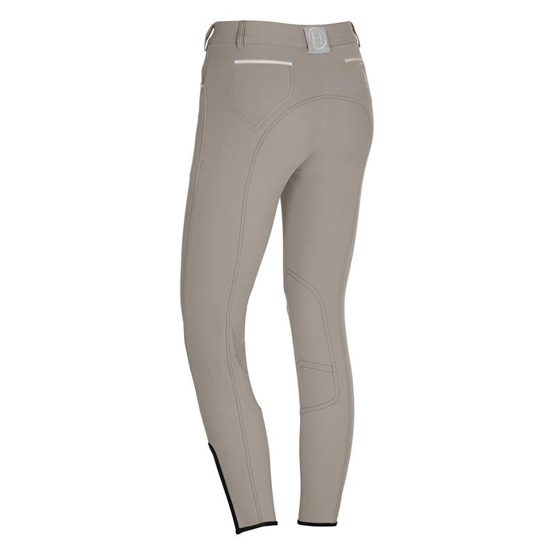 Calças knee patch, com dois bolsos frontais, dois bolsos traseiros falsos e elegantes, detalhes discretos bordados e acabamento decorativo nos bolsos.