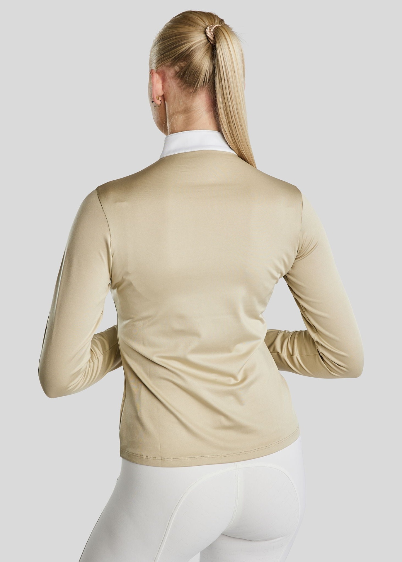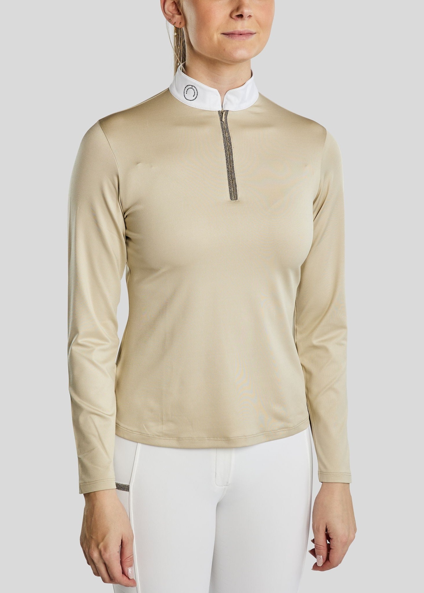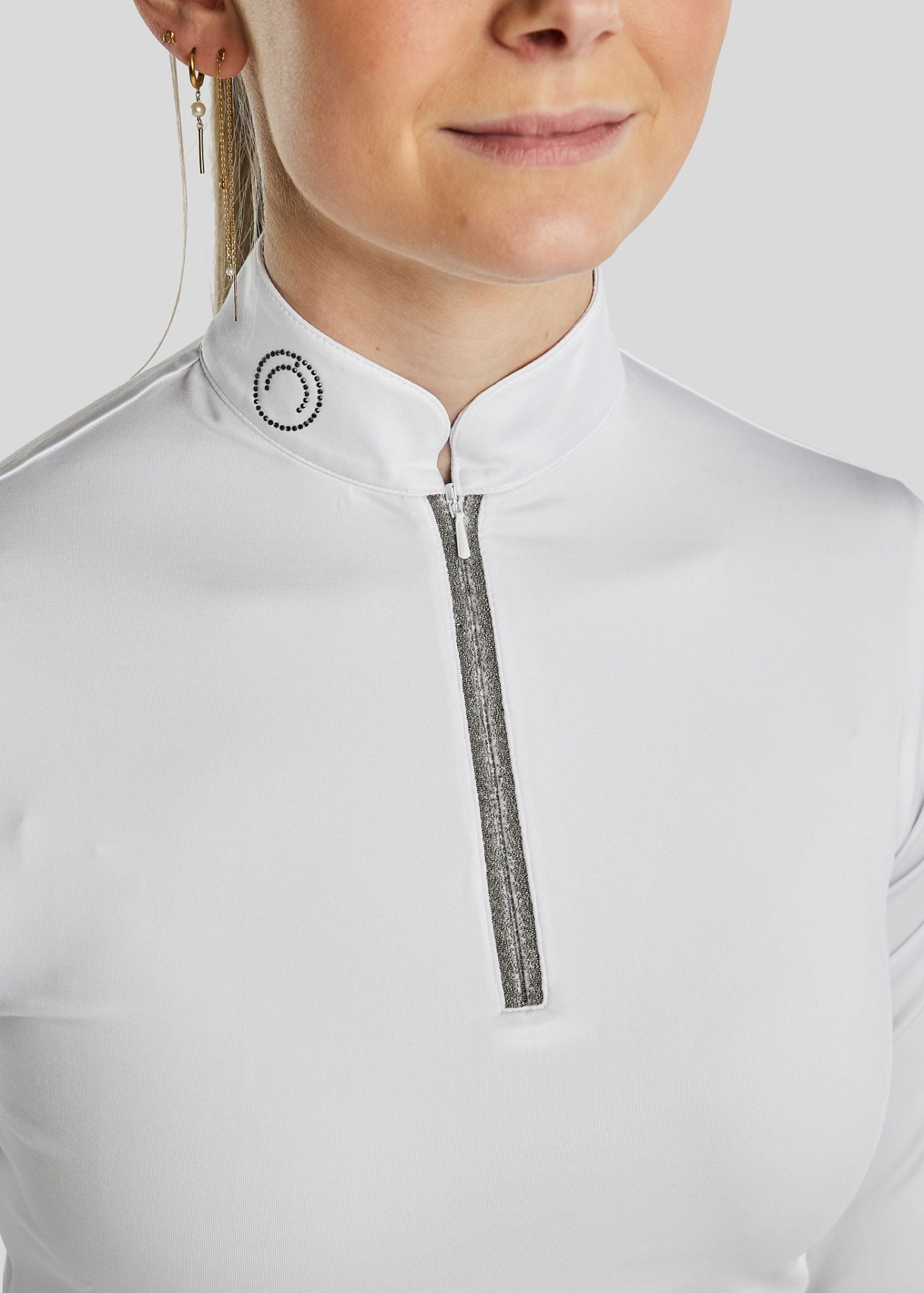 Realce a sua elegância com a camisola de competição MoGaia com fita caviar cor de chumbo. Combina luxo, conforto e funcionalidade.