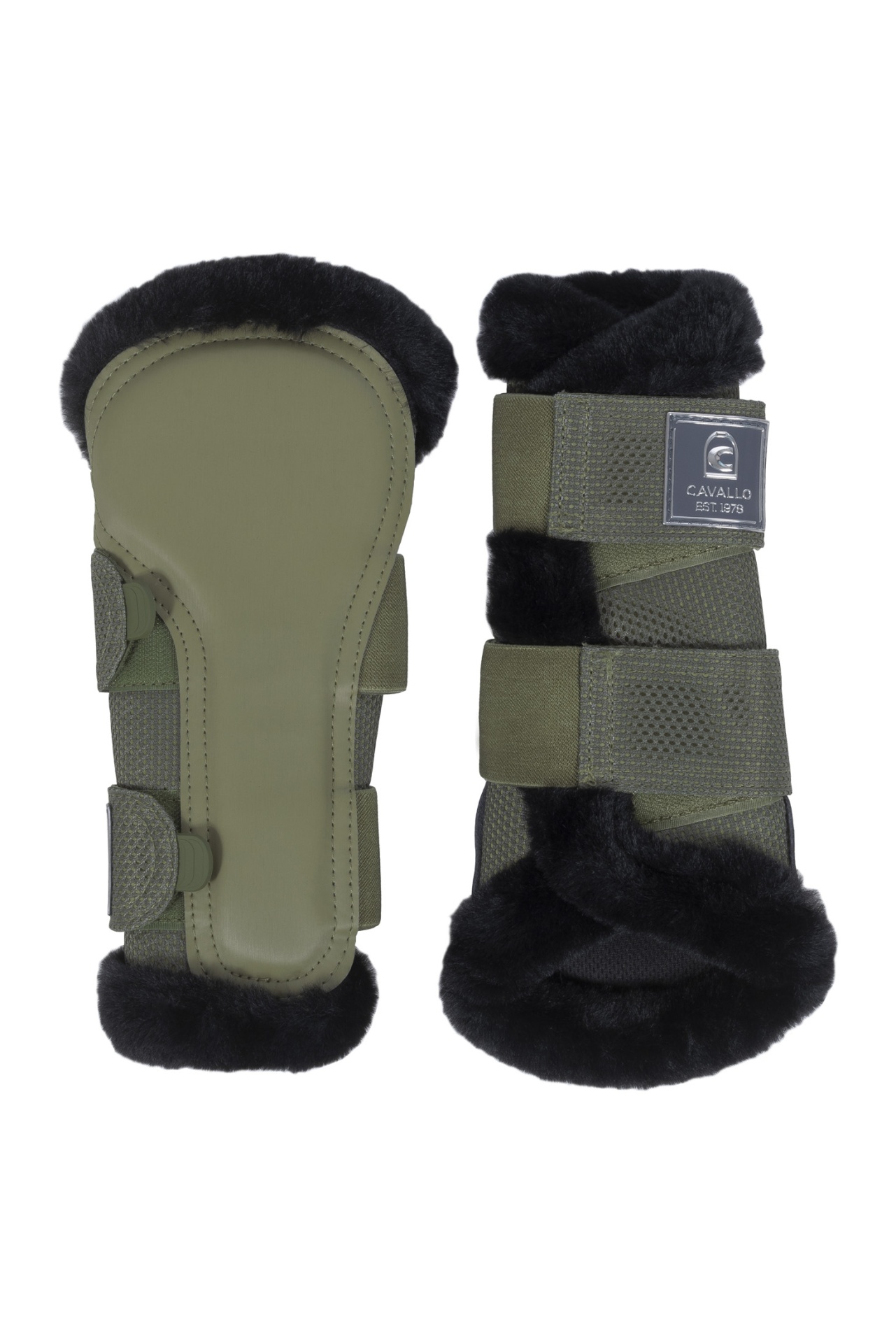 - A tira superior de velcro é decorada com uma etiqueta da Cavallo.