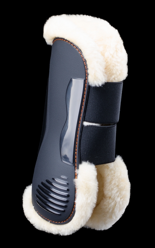Caneleiras abertas com neopreno e Lycra, com forro de pêlo de borrego sintético, reforçadas no exterior com TPU e um exclusivo tratamento para um aspecto tipo couro, equipadas com duas tiras elásticas e duplo velcro.