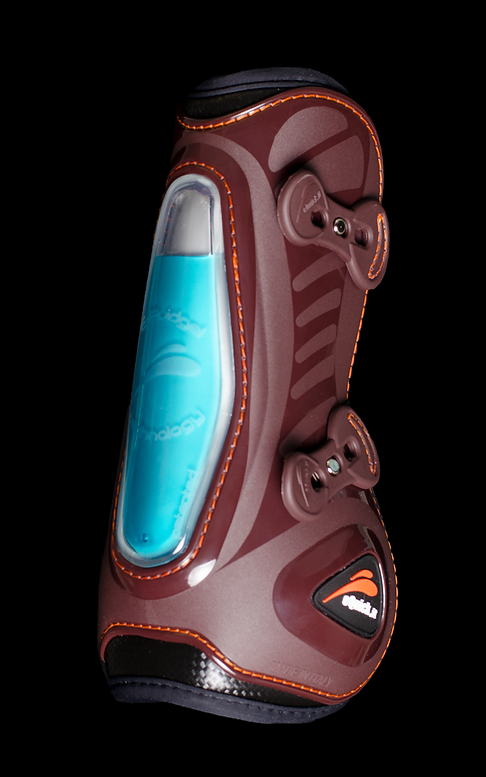 A bolha especial no exterior reduz eficazmente o impacto que o membro do cavalo pode sofrer devido à compressão do ar/gel e à sua capacidade de absorção de choques.
