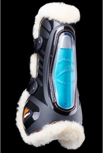 Tecnologia exclusiva patenteada eFluidgel A bolha especial no exterior reduz eficazmente o impacto que o membro do cavalo pode sofrer devido à compressão do ar/gel e à sua capacidade de absorção de choques.