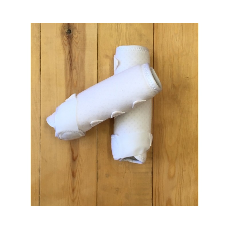 Caneleiras que podem ser utilizadas nas mãos ou pés (utilizar um tamanho acima para os pés), fabricado em Neopreno "NEOTEC" perfurado para uma transpiração óptima da extremidade. Ajuste perfeito ao boleto graças à sua forma anatómica e 4 fechos de velcro.