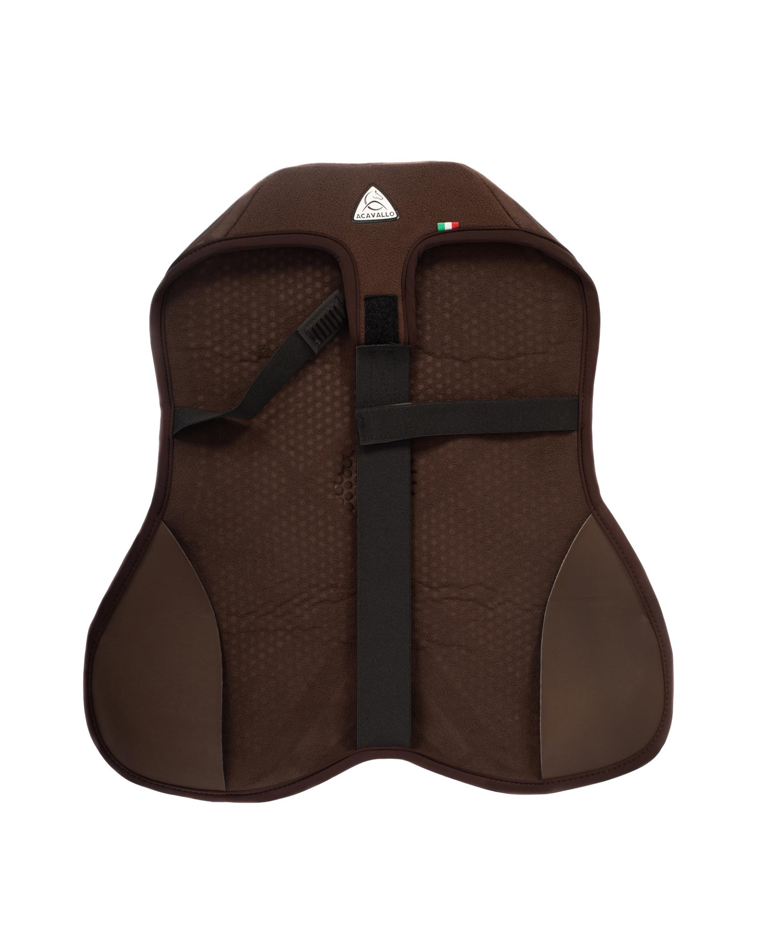 Este produto foi criado para assegurar ao cavaleiro segurança e conforto. A sua construção única em gel respirável apoia o tronco do cavaleiro estabilizando os ossos no assento e reduzindo a concusão na zona inferior das costas. Discreto e fácil de ajustar a qualquer selim, esta protecção ajuda o cavaleiro a sentir-se confortável enquanto salta ou até em passeios, ajuda a obter um assento profundo e estável.