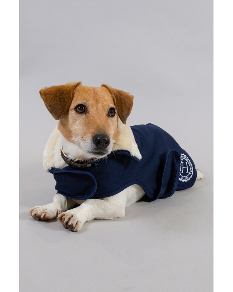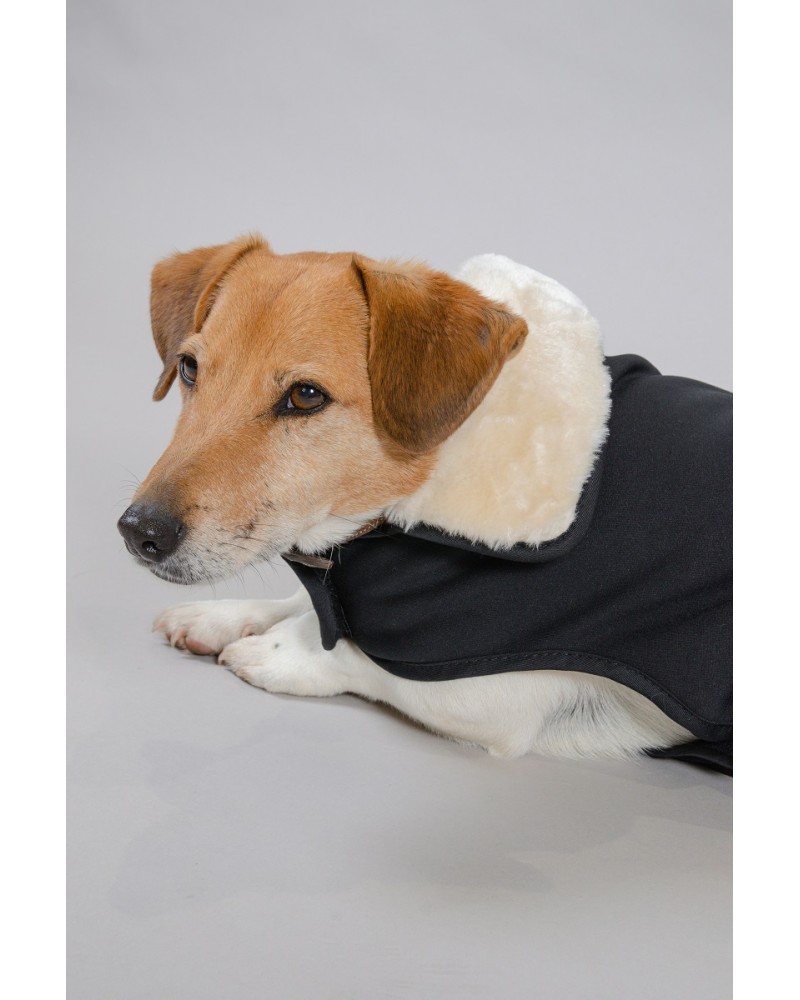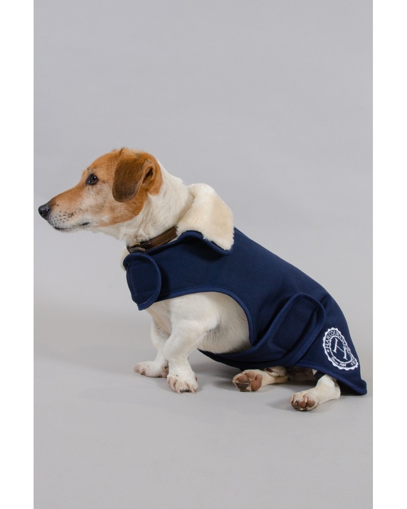 Capa para cão em tecido suave com forro polar para mais aquecimento e conforto. Fechos de velcro no peito e na barriga. Logotipo bordado no lado esquerdo. Com pêlo sintético na zona na gola.