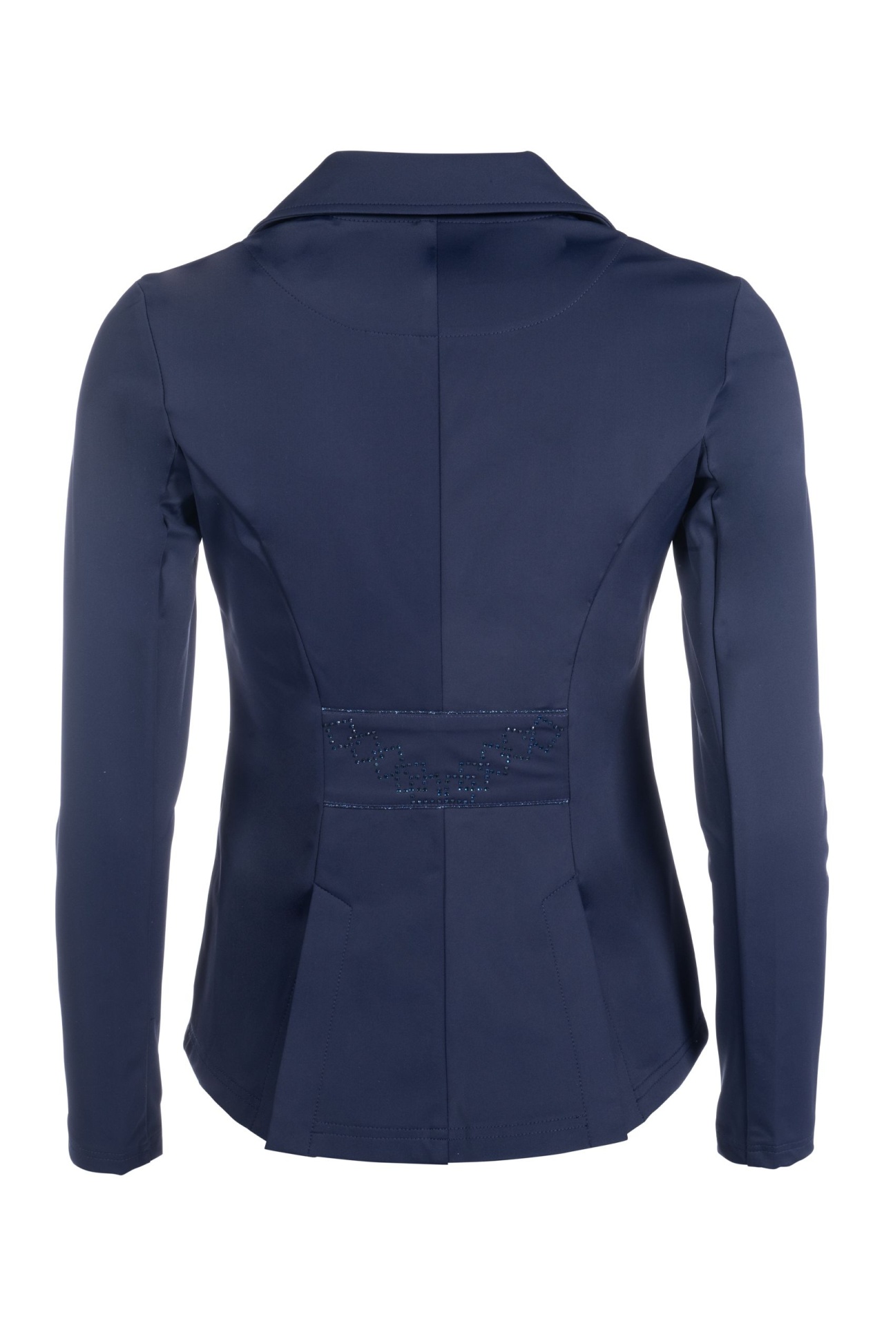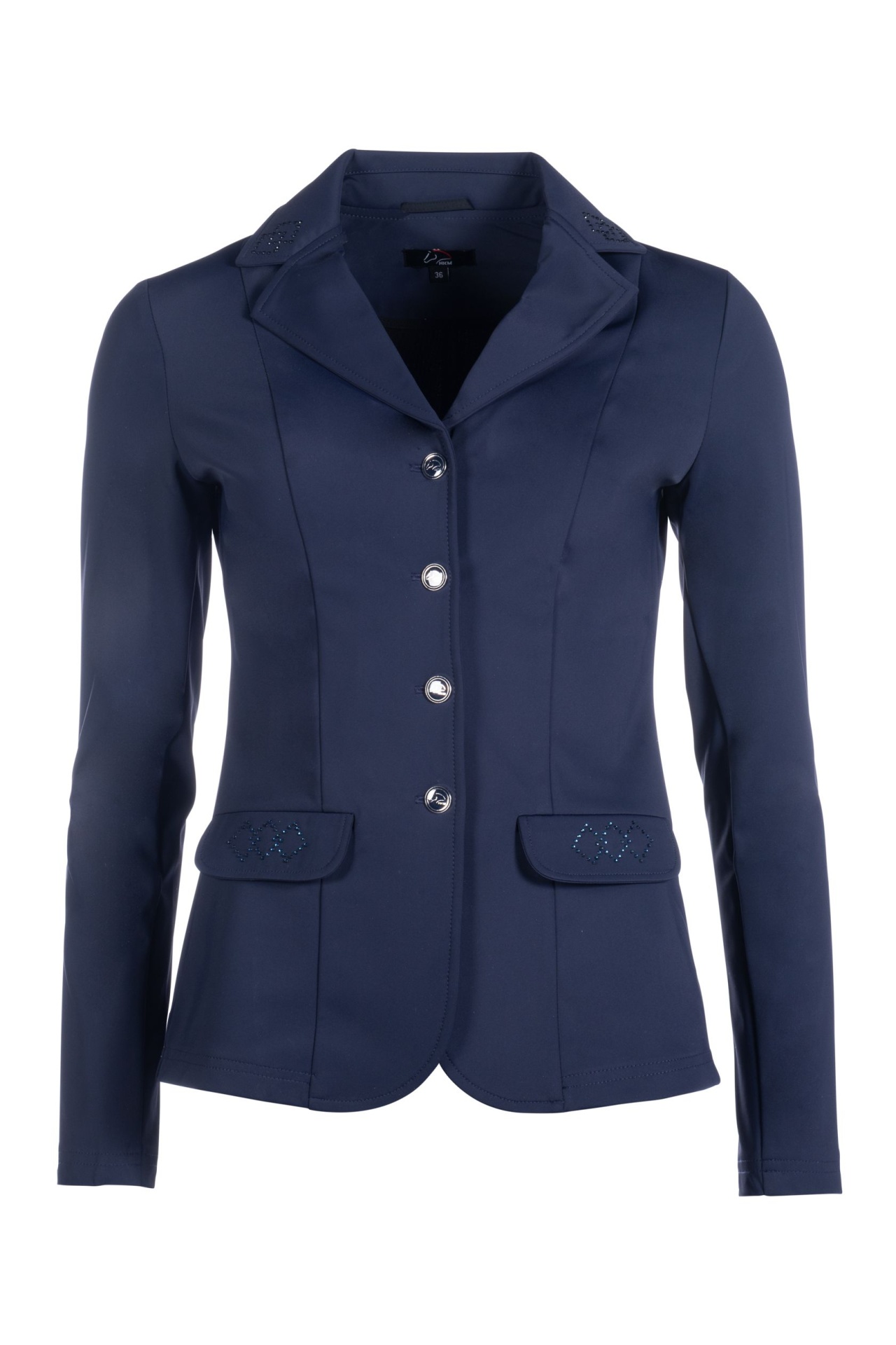 Casaca em tecido respirável, resistente à sujidade e decorada com cristais tom sobre tom. Corte cintado, com duas aberturas traseiras e tecido anti rugas. Zipper frontal e botões. Brilhantes no cinto traseiro.