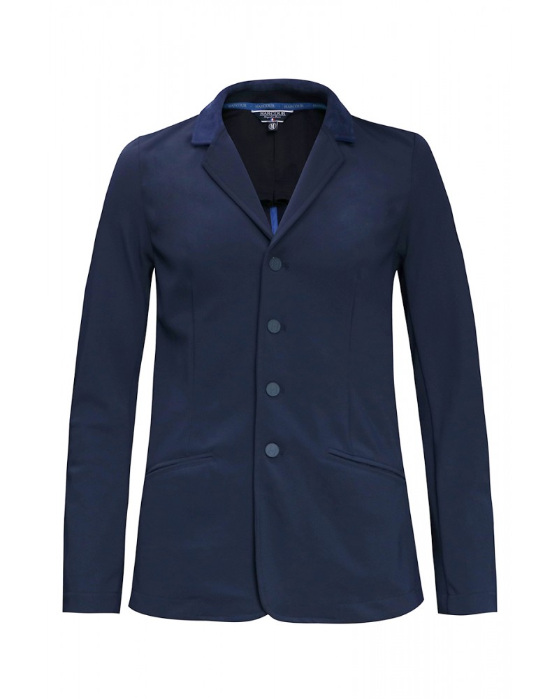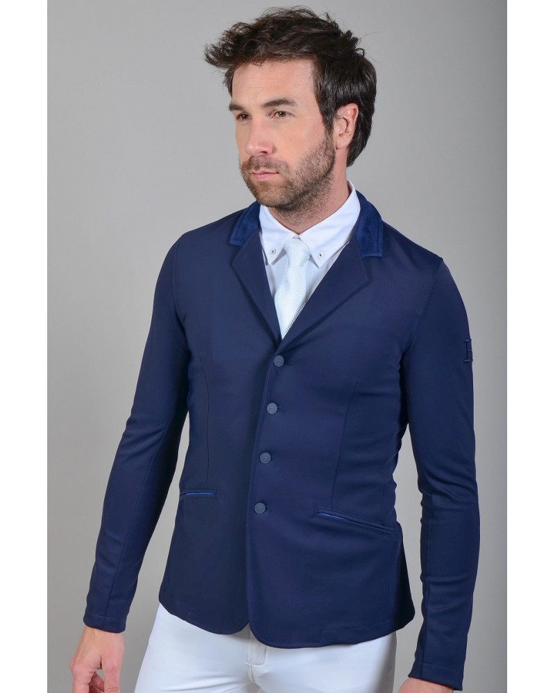 Corte justo, elegante e atractivo. Botões na frente e bordado logotipo Harcour na manga no mesmo tom do tecido.