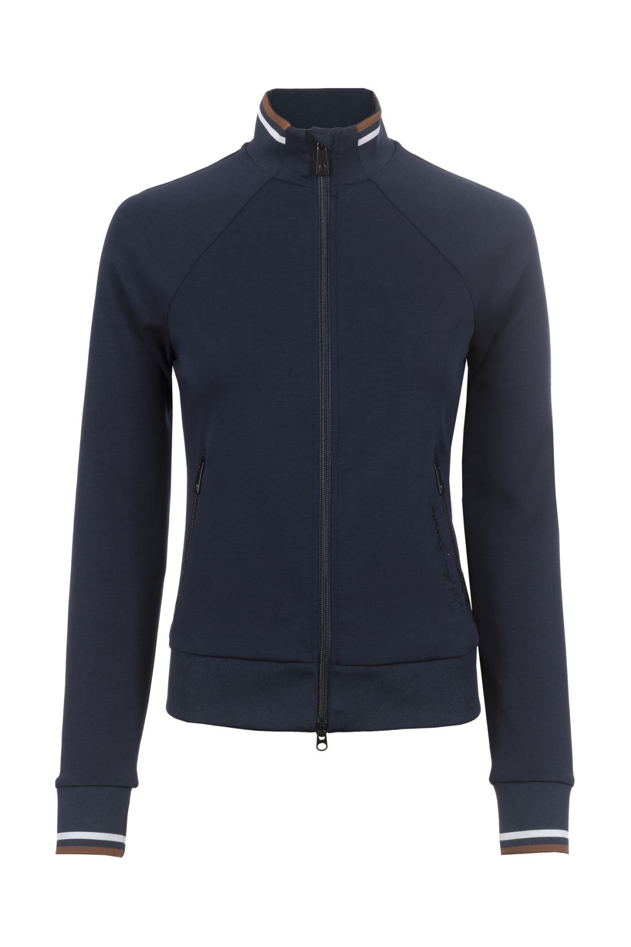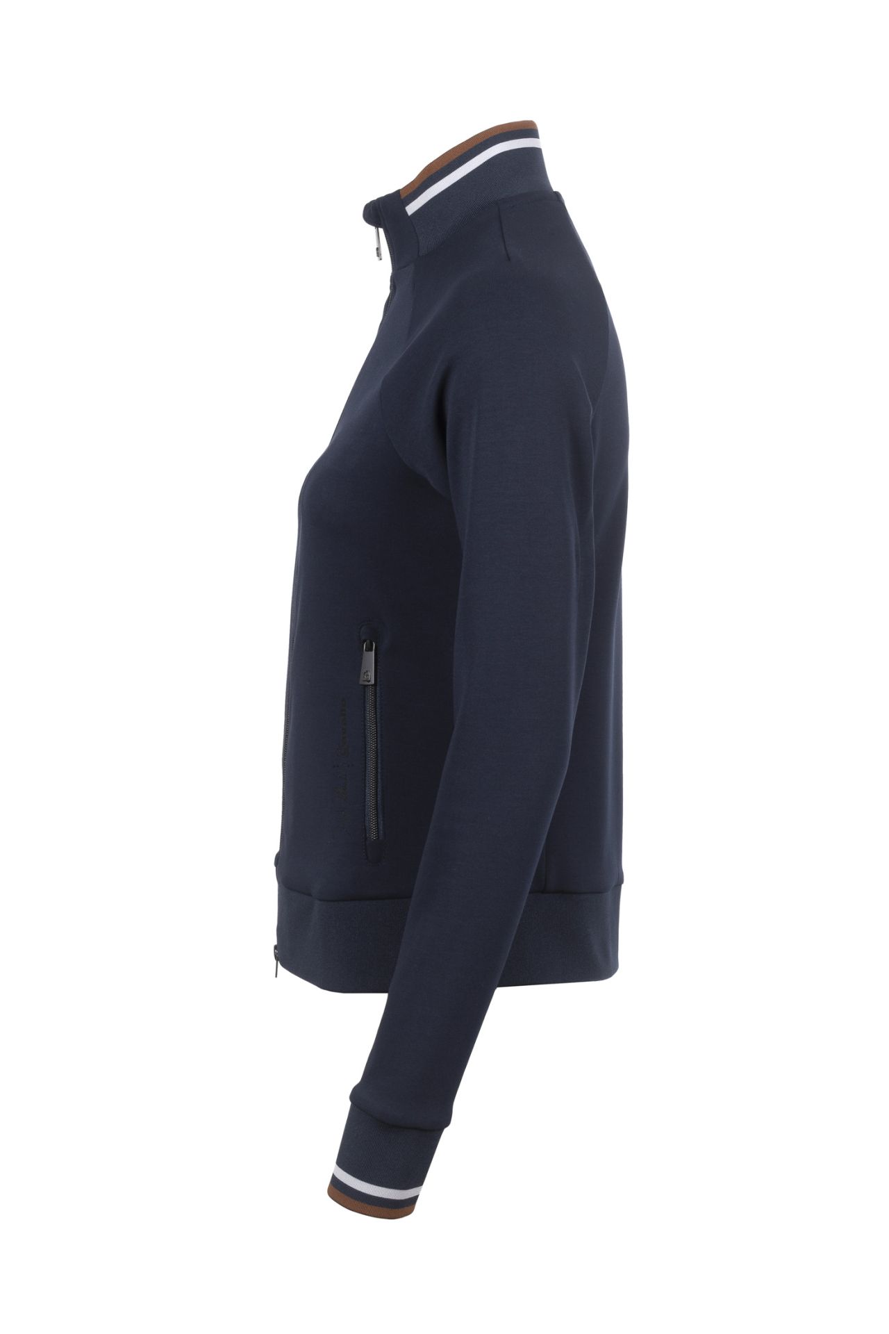 Casaco desportivo com gola alta e mangas raglan.