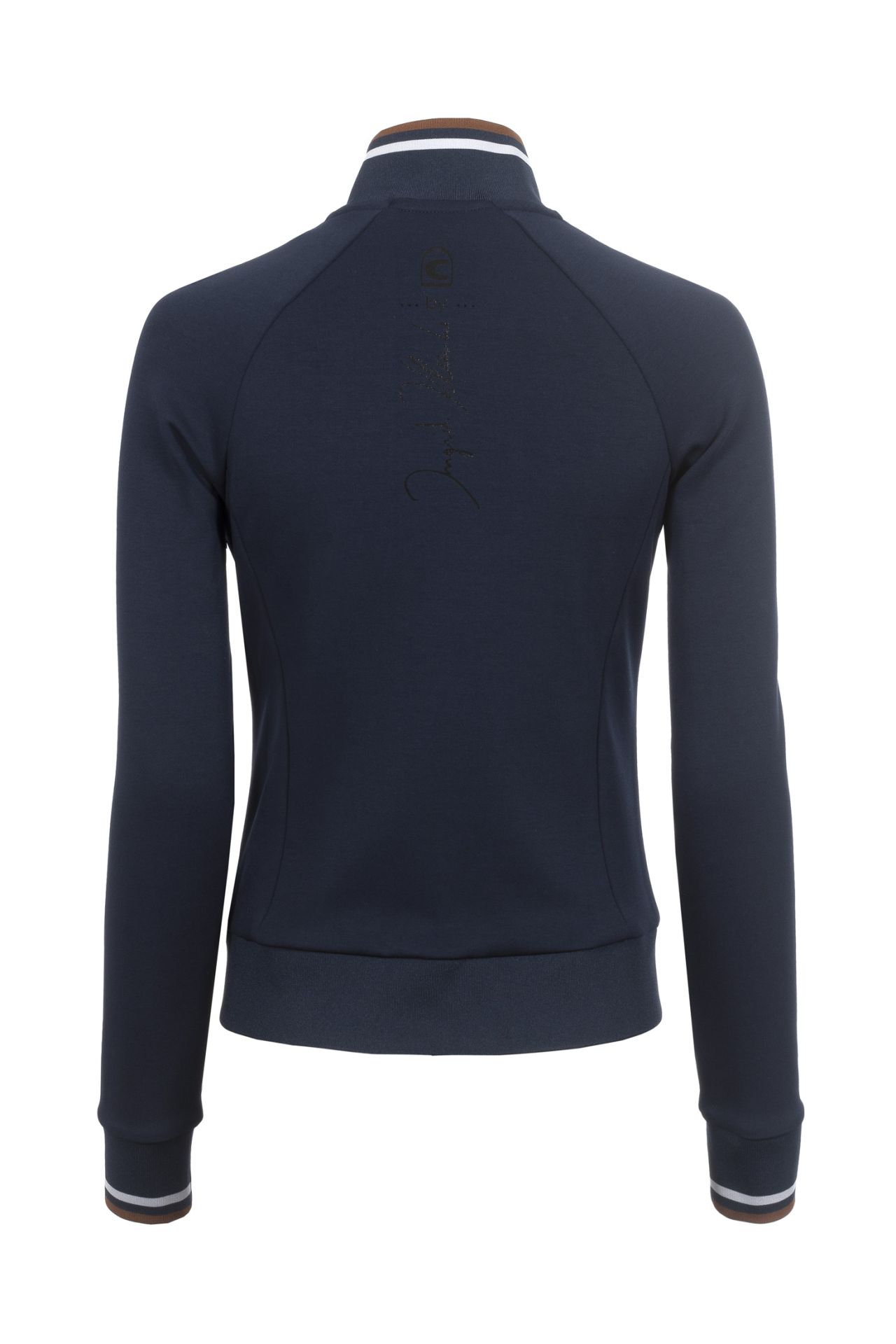 - Estampado de Ingrid Klimke by Cavallo com cristais brilhantes no bolso esquerdo;