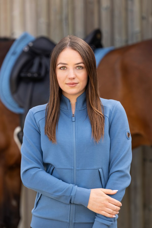 Casaco desportivo que combina um fecho de correr bidirecional com tecido elástico para um conforto ideal ao vestir.