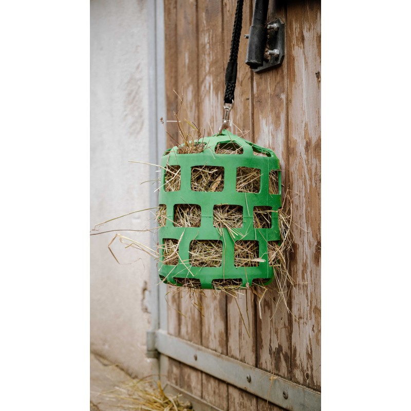 - Alternativa à rede de feno: fomenta uma alimentação lenta, promove a digestão e mastigação e ajuda a prevenir cólicas.
