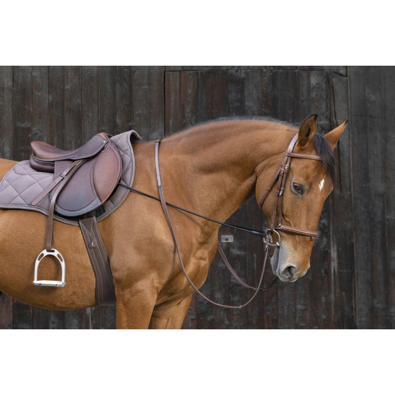 Este sistema fixo e directo permite a extensão até abaixo ou a posição alta do pescoço favorecendo e sustentando a oscilação da espalda. Sendo completamente elástico, pode-se utilizar sem riscos tanto para dar trabalho à guia como a cavalo e a sua utilização é muito simples.