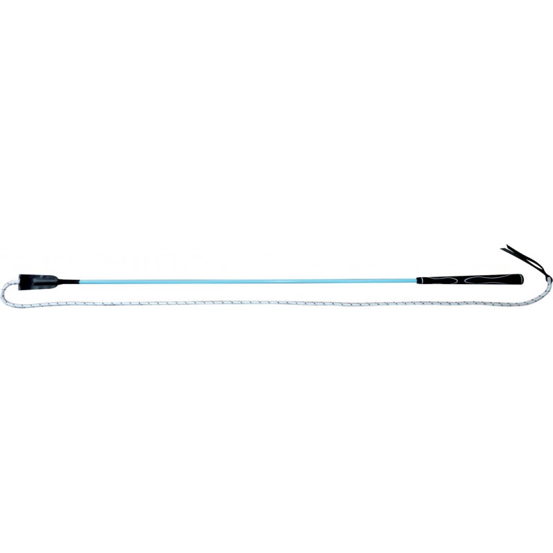 Chicote de comunicação, que faz uma extensão do seu braço e utiliza-se nos exercícios a pé na equitação natural. Em fibra de vidro com lingueta de couro de búfalo e ponta amovível de polipropileno com duplo enlace em couro na extremidade (comprimentp 190cm).