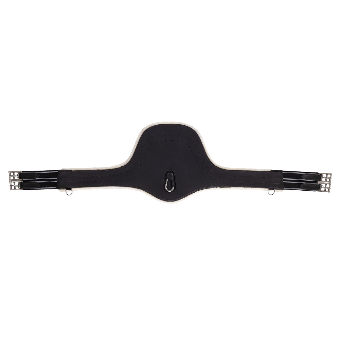 Cilha babete robusta e anatómica, fabricada em pele de bovino com forro interior macio de pele sintética para maior conforto.