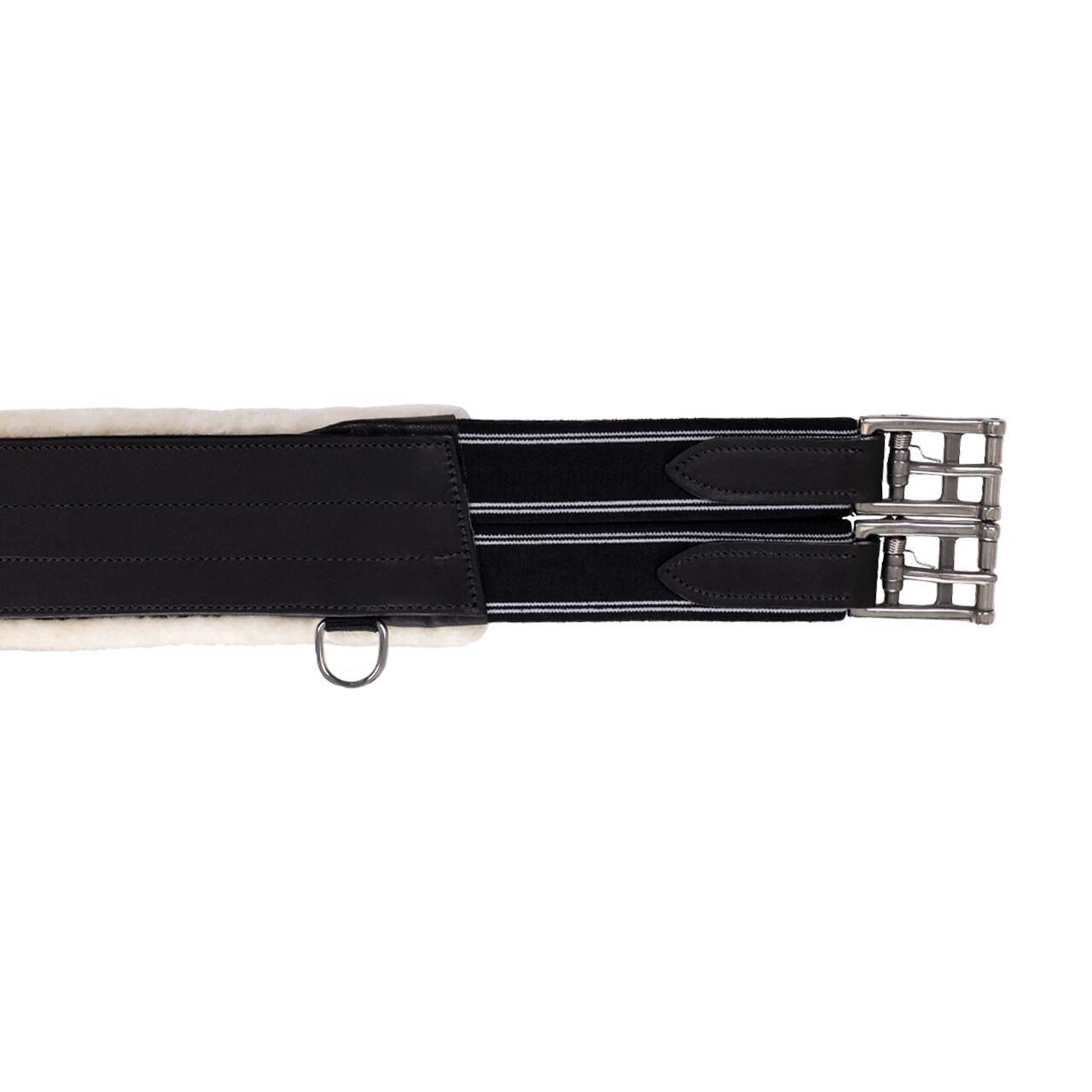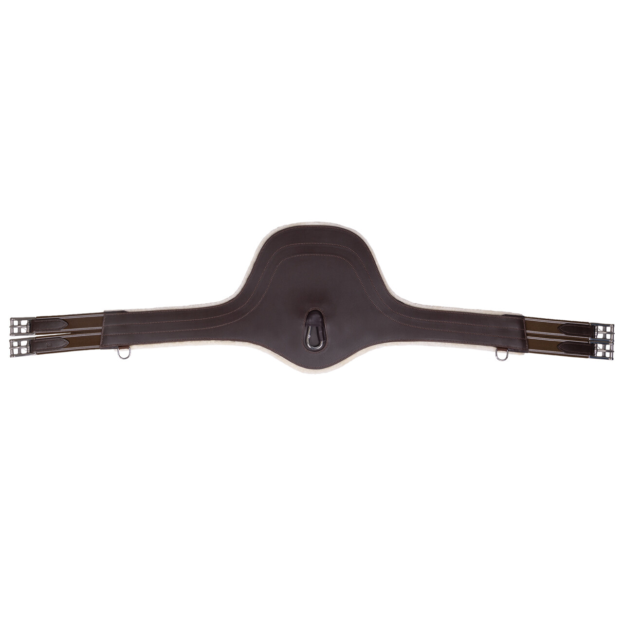 Cilha babete robusta e anatómica, fabricada em pele de bovino com forro interior macio de pele sintética para maior conforto.