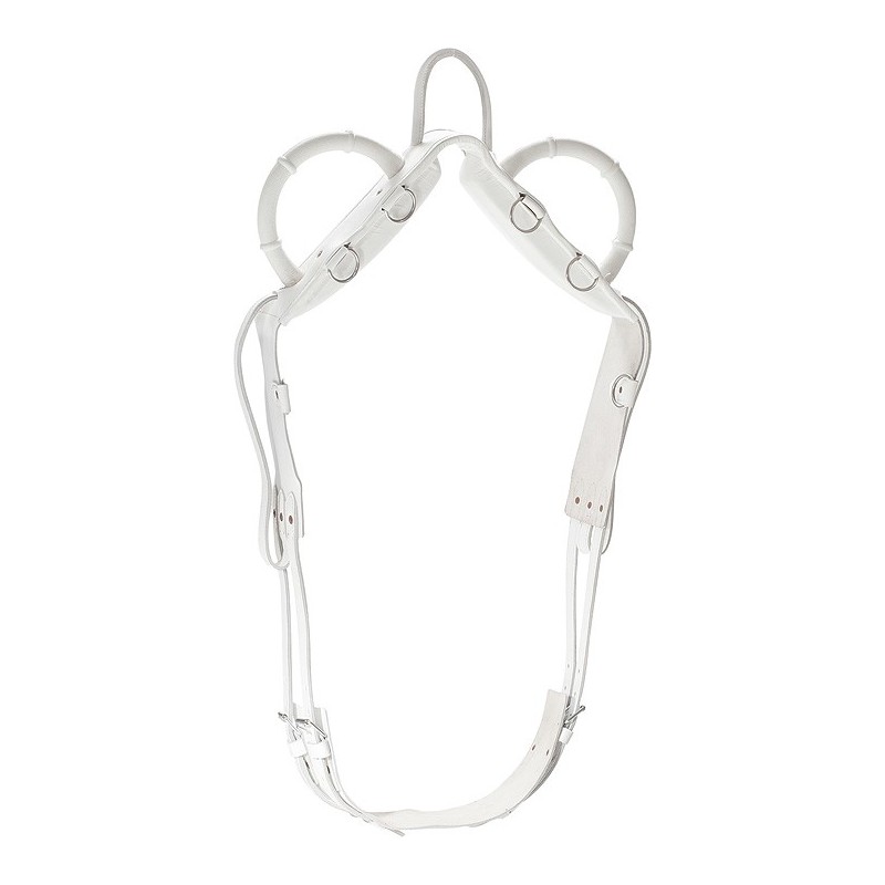 Cilhão de couro de búfalo de 14 cm de largura equipado com duas asas redondas e fixas de 11,5 cm de alto e 13,5 cm de largura, com uma asa central de couro maleável.