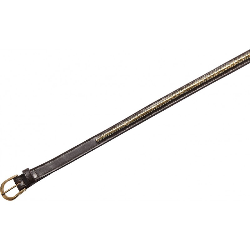 De couro de búfalo suave para não incomodar o cavaleiro nos seus movimentos, adornado de incrustações "clincher" de latão polido maciço com fivela a combinar.