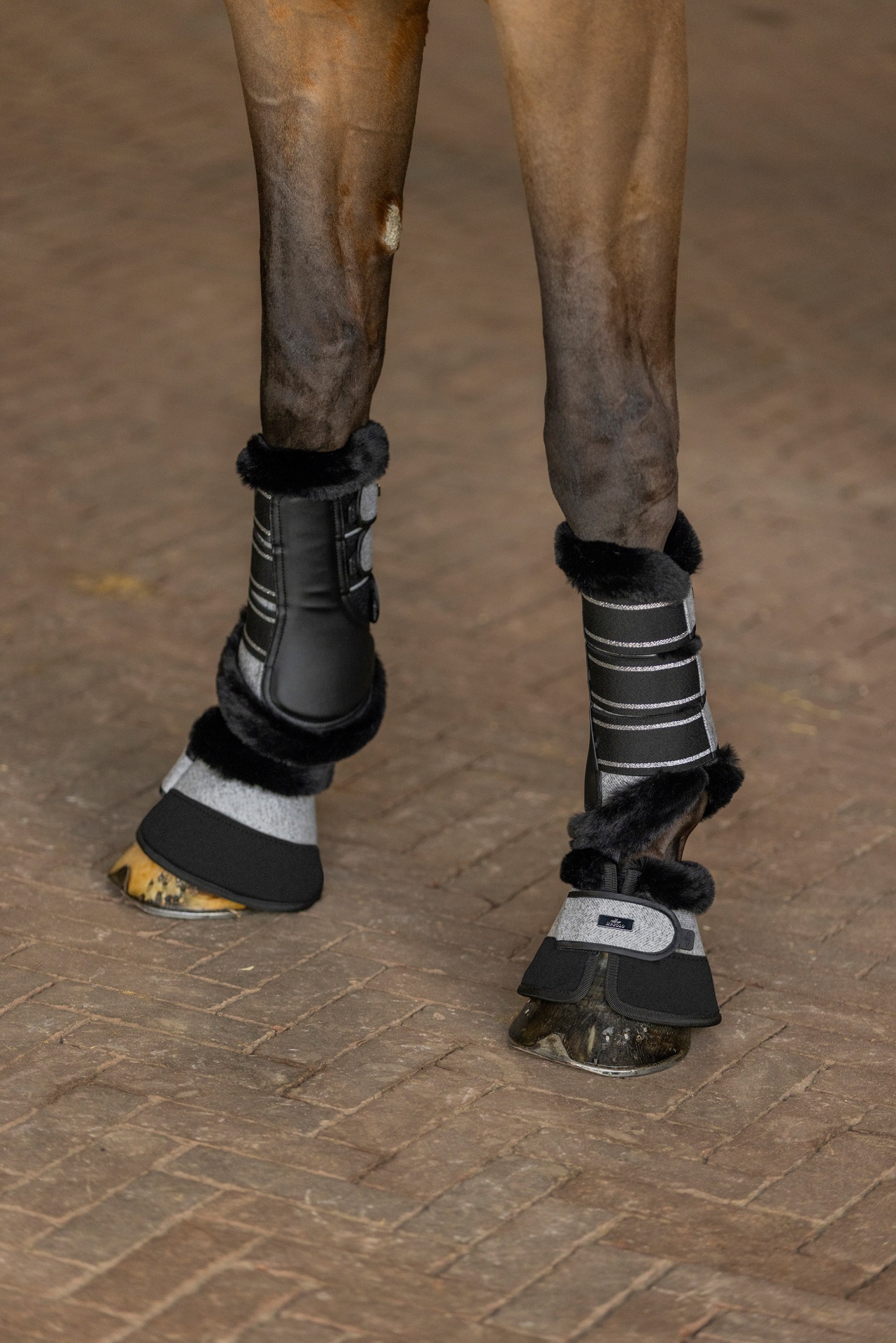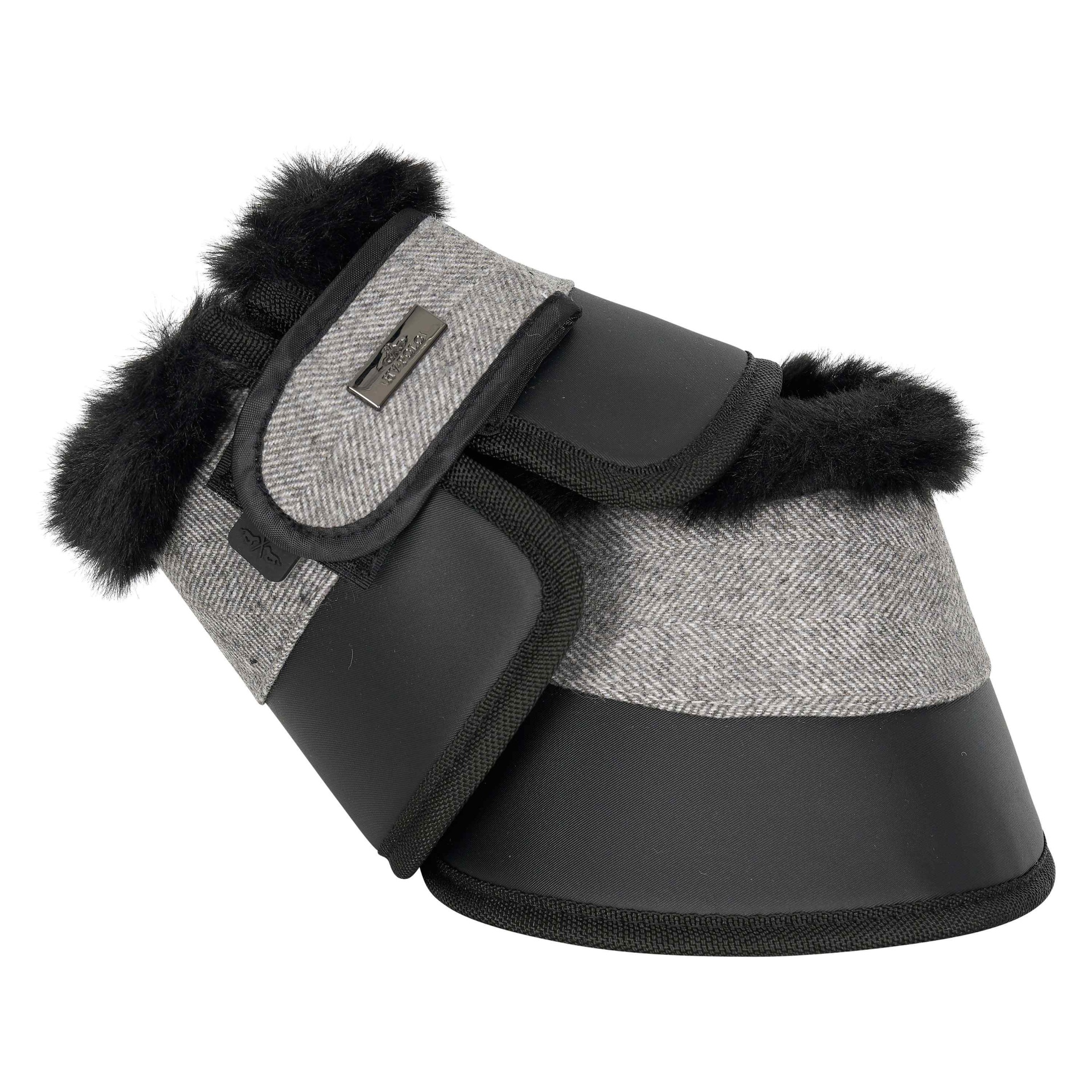 "Mantenha as patas do seu cavalo seguras e elegantes com as cloches HVPFrancis. Com forro em pêlo sintético, placa de metal com o logótipo e material lavável, é um item indispensável."
