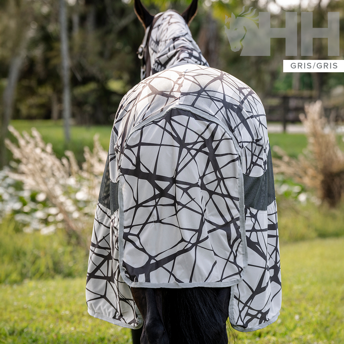 Desenhada especificamente para ajudar os cavalos a camuflarem-se dos insectos e das moscas!