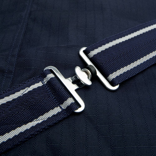 Também dispõe de pregas nas mãos para facilitar a mobilidade do cavalo e cobre rabada para a protecção da base da rabada. O cobre-pescoço está integrado no cobrejão.