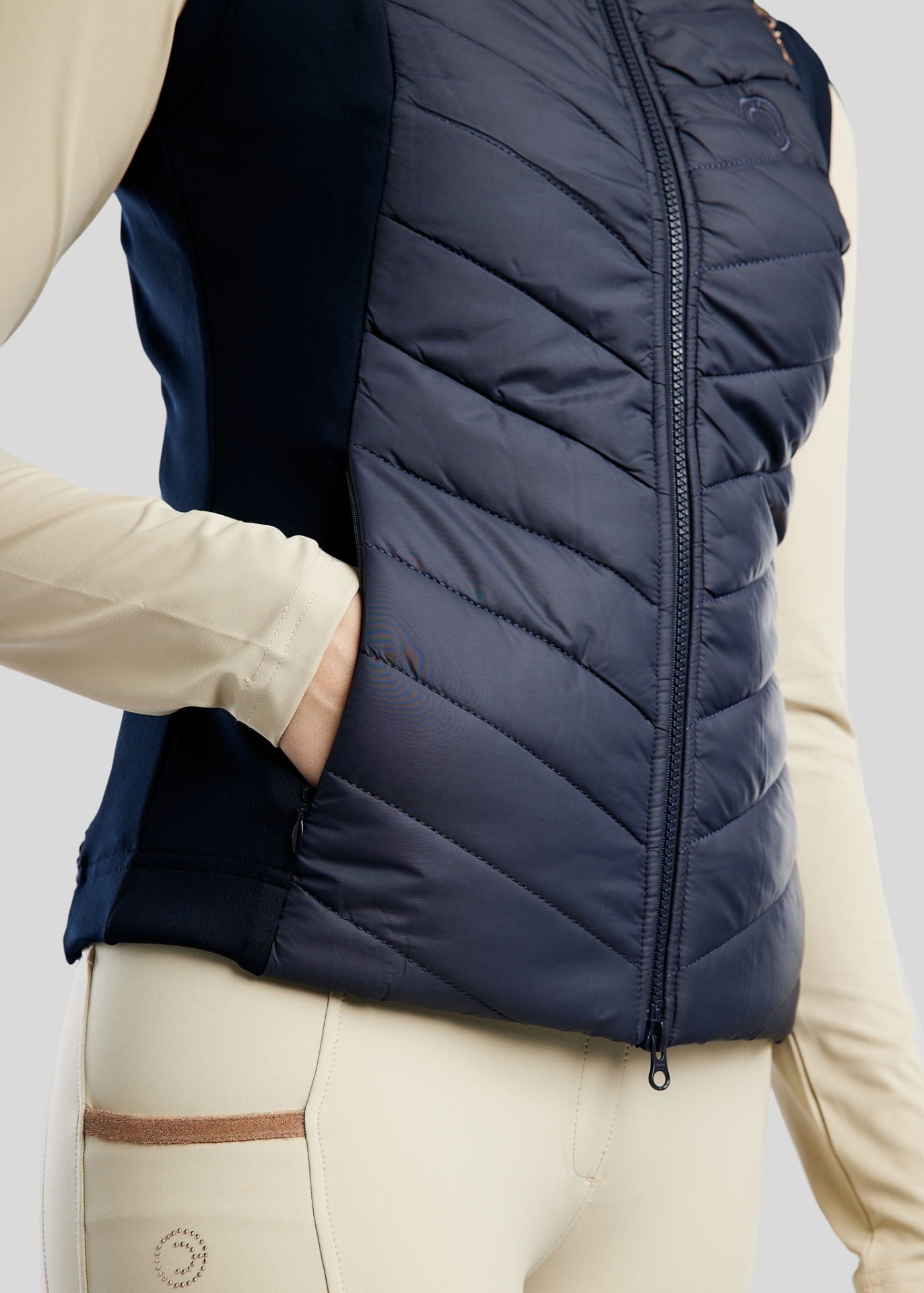 O colete híbrido Mari é um colete elegante e funcional, concebido para quem deseja combinar o conforto prático com um visual exclusivo.