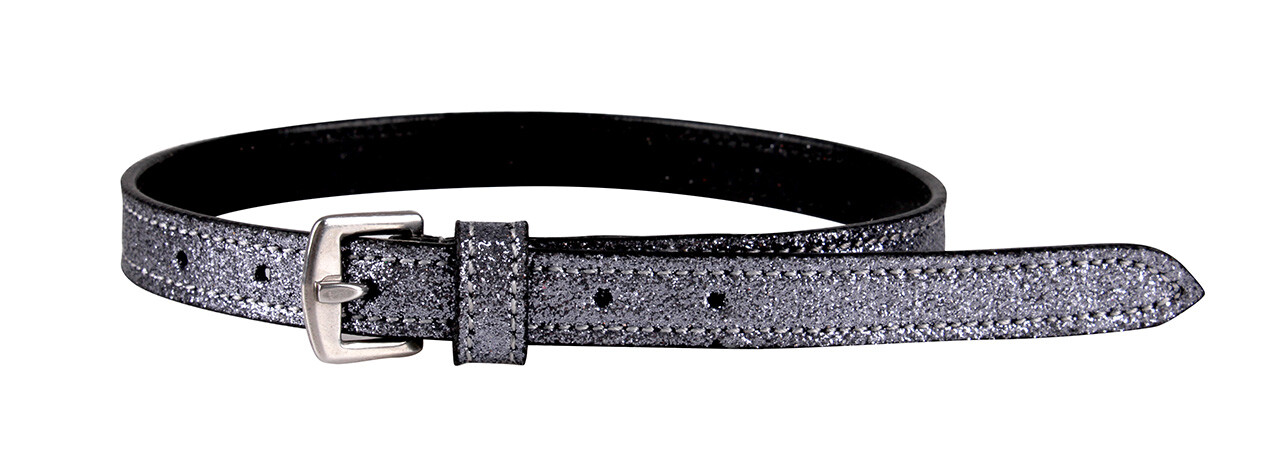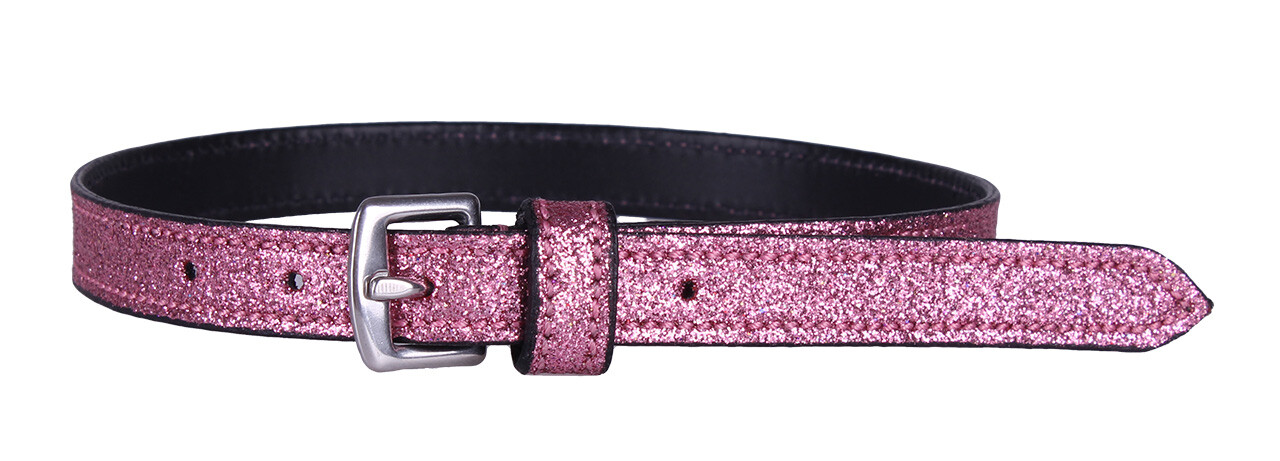 Têm glitter colorido em toda a volta, que fica bem aplicado no couro.