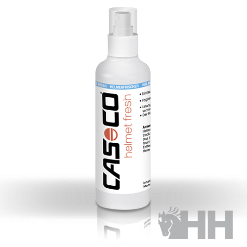 Frasco branco de spray CASECO helmet fresh sobre fundo branco