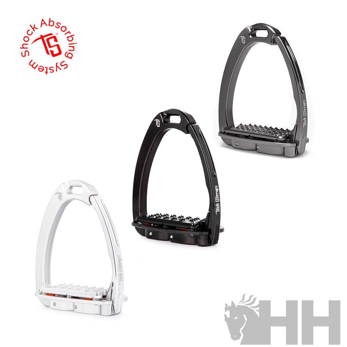 Todos os estribos Tech Stirrups são produzidos em Itália, nas suas próprias instalações usando alumínio ERGAL laminado a frio para oferecer o mais alto nível de qualidade e cada um dos seus produtos foi projectado com as suas próprias características técnicas e funcionais, para dar a cada cavaleiro a oportunidade de escolher os estribos mais adequados para a sua disciplina e necessidades. Fabricados inteiramente de materiais metálicos, não poluentes e recicláveis. Modelo totalmente homologado pela FEI para competições.