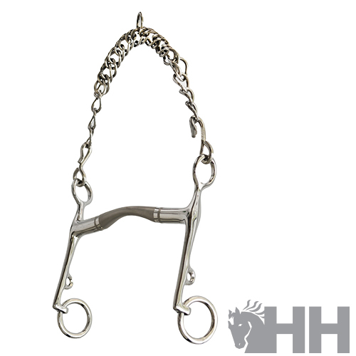Freio de dressage fabricado em aço inoxidável e polido a mão. A embocadura é muito suave. O centro da embocadura encontra-se polida à mão em aço matte.