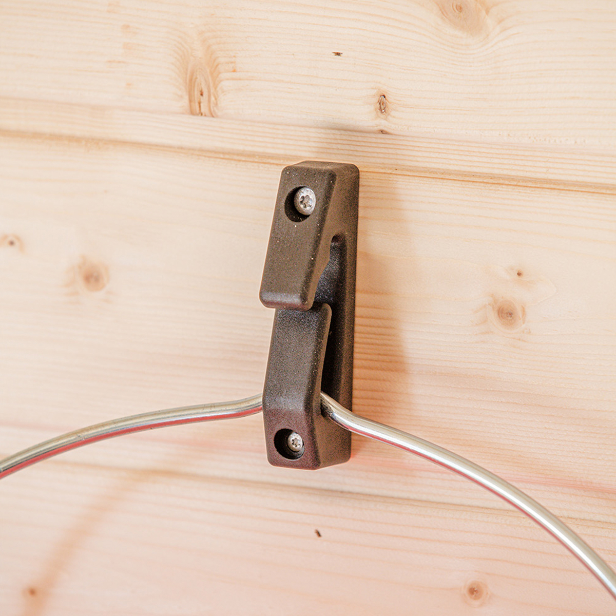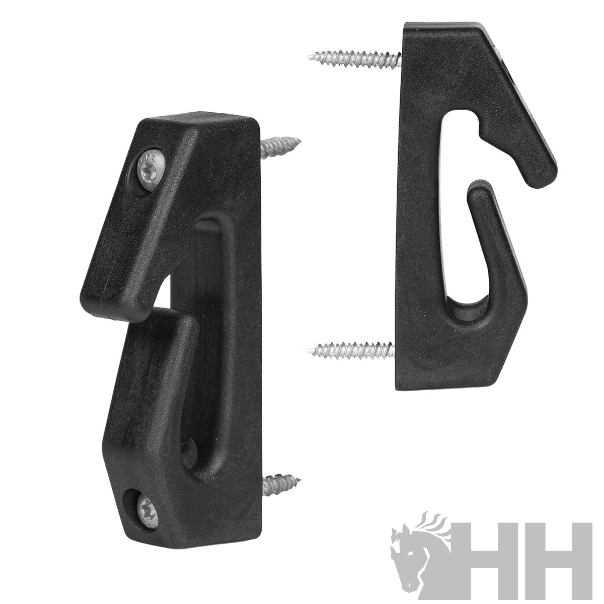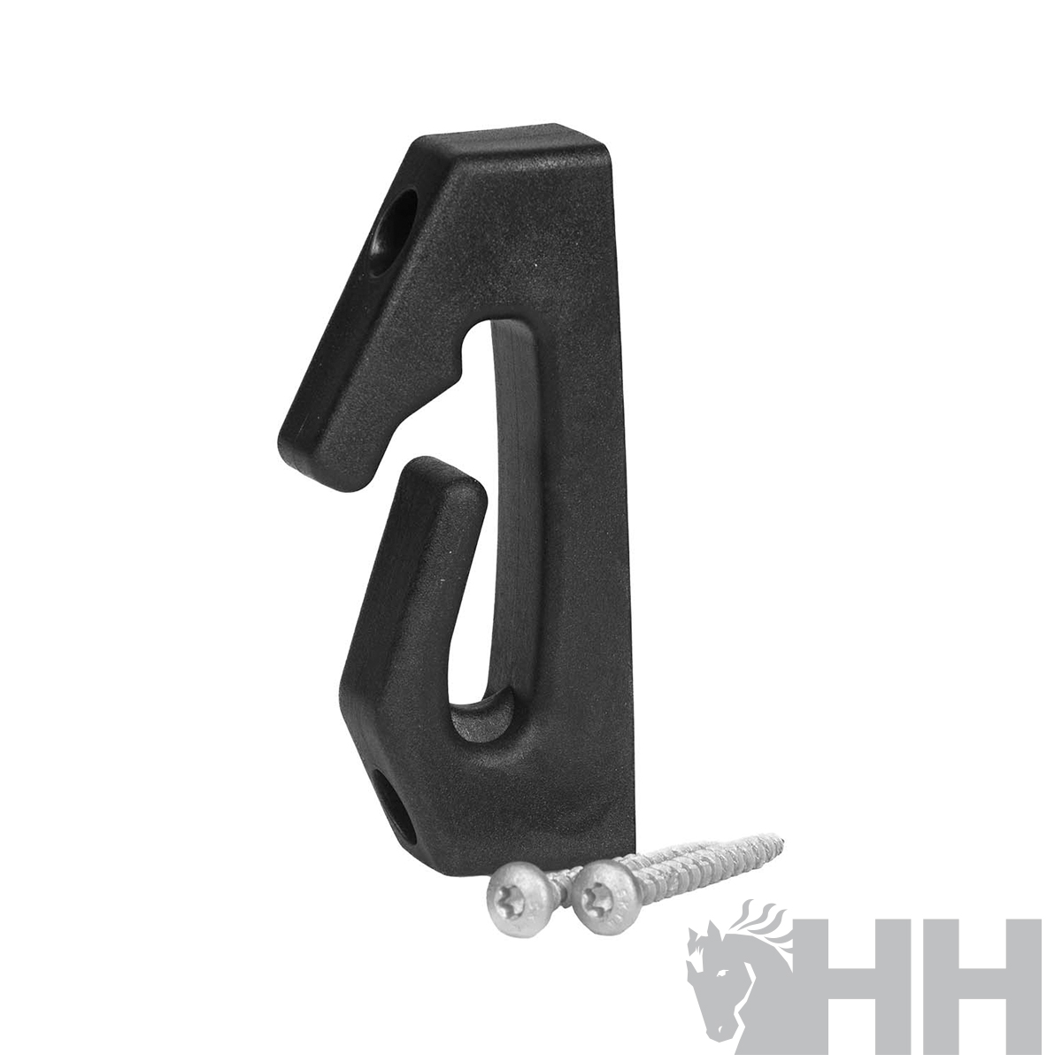 Gancho de plástico muito resistente, compatível com baldes com asa de até 8 mm de diâmetro. Rebordos arredondados e suaves com orifícios para parafusos encastrados para evitar que os animais se magoem. Graças à sua robusta construcção, estes ganchos são ideais para usar em estábulos, quintase outros ambientes exteriores e interiores. Cada gancho inclui 2 parafusos para uma fácil instalação. Desenhado para um uso versátil e prático.