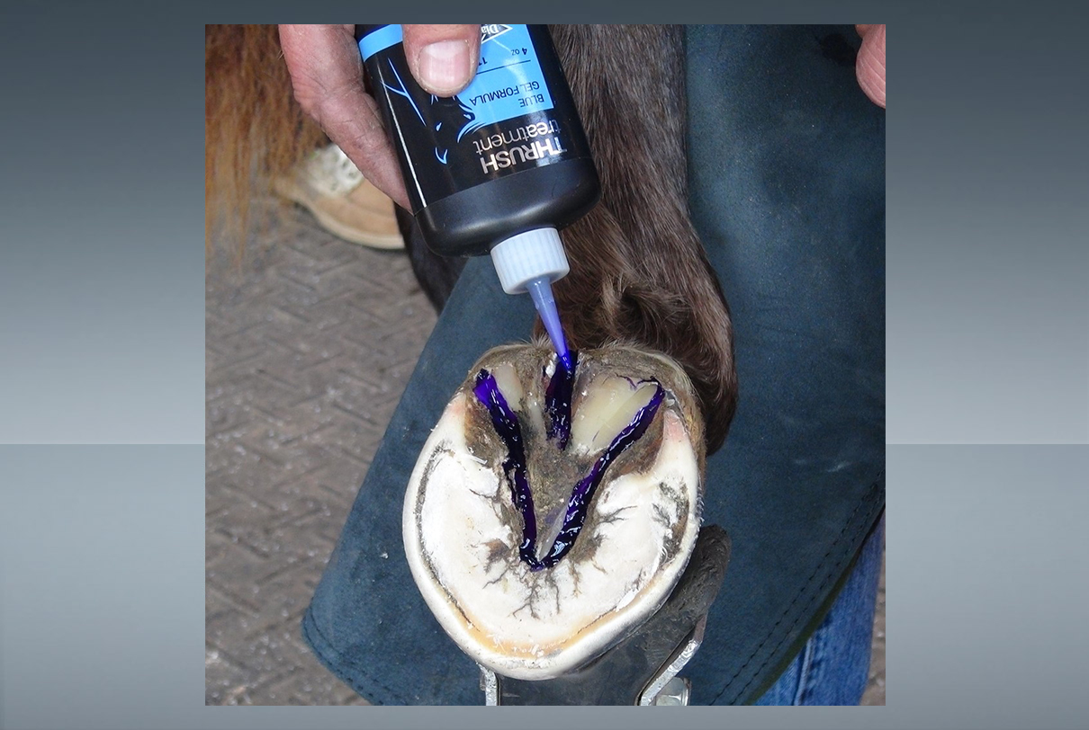 Gel antiséptico que ajuda a reduzir as bactérias e fungos. Une-se à proteína do casco para formar uma barreira entre o tecido infectado e o saudável.