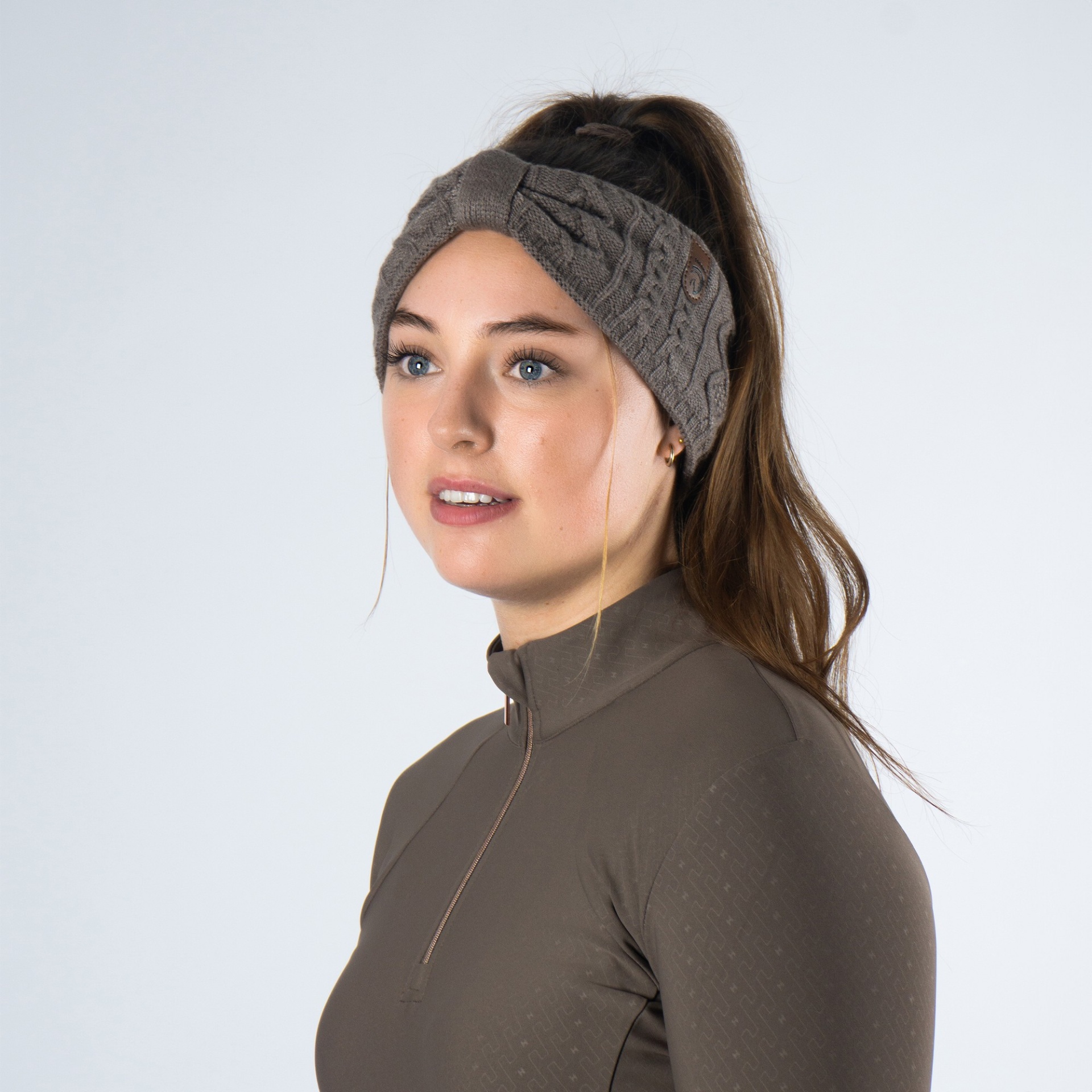 Headband em malha com forro polar e frente sobreposta.