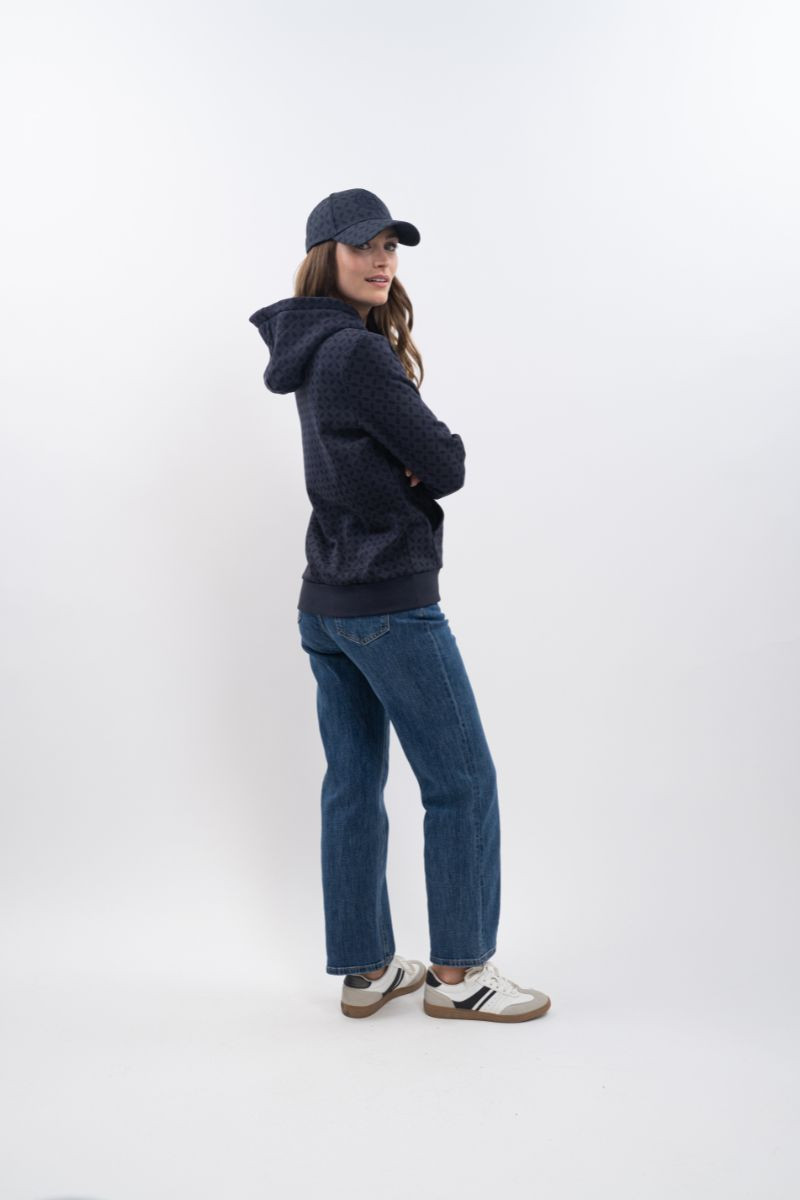 Com logótipo no centro que combina com a cor do hoodie, que lhe confere um visual único e elegante.