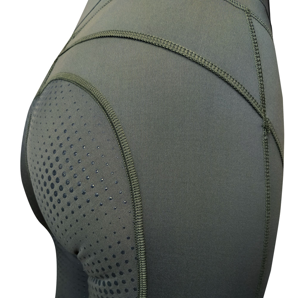 - Leggings em malha elástica com silicone no assento completo, que se adaptam perfeitamente ao corpo.