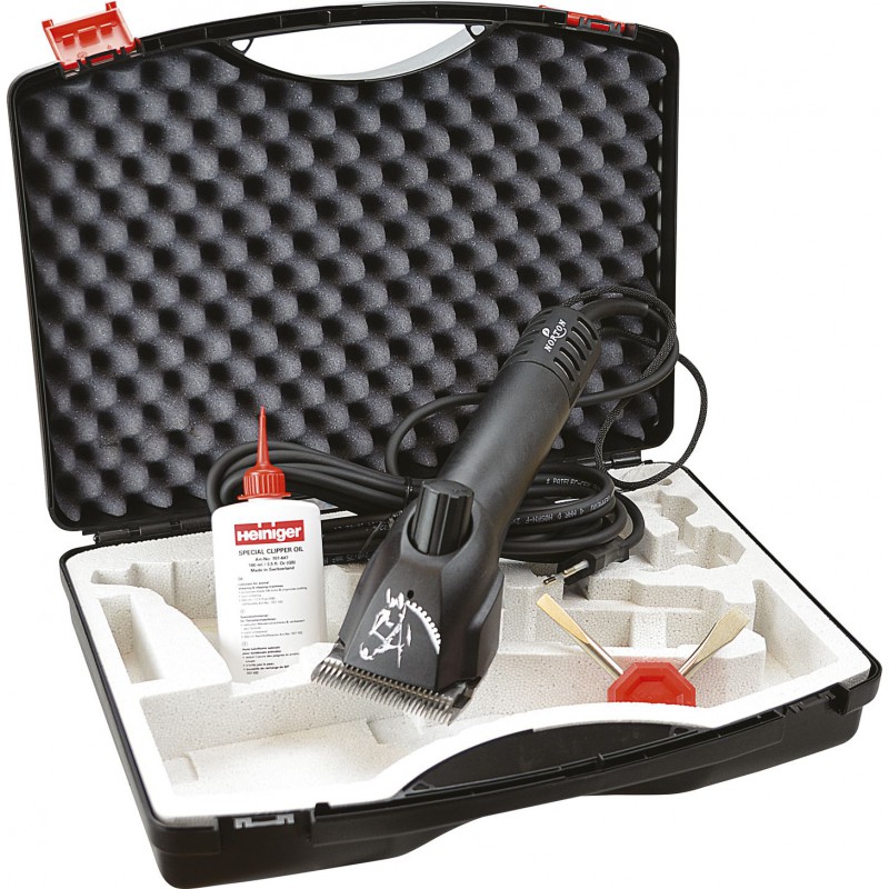 Design moderno, muito fácil de manipular com zona de agarrar fina, peso de menos de um kilo e a inclinação da cabeça de 13° que diminui o cansaço quando se tosquia integralmente o cavalo, e simplifica a tosquia das partes sensíveis.