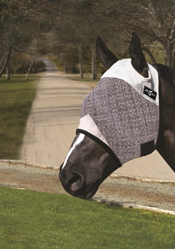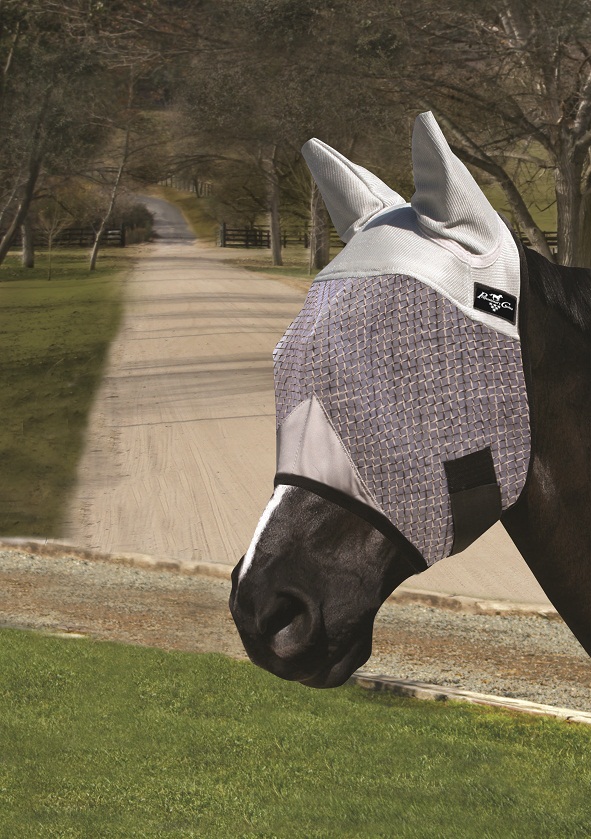 O poliéster utilizado é ligeiro, resistente e fresco, com uma tecnologia anti-rupturas. O seu design, com pregas colocados para proteger os olhos do cavalo, ajuda a manter intacta a visão do animal e com a ajuda dos fechos com velcro, garante que a máscara se mantenha na sua posição.